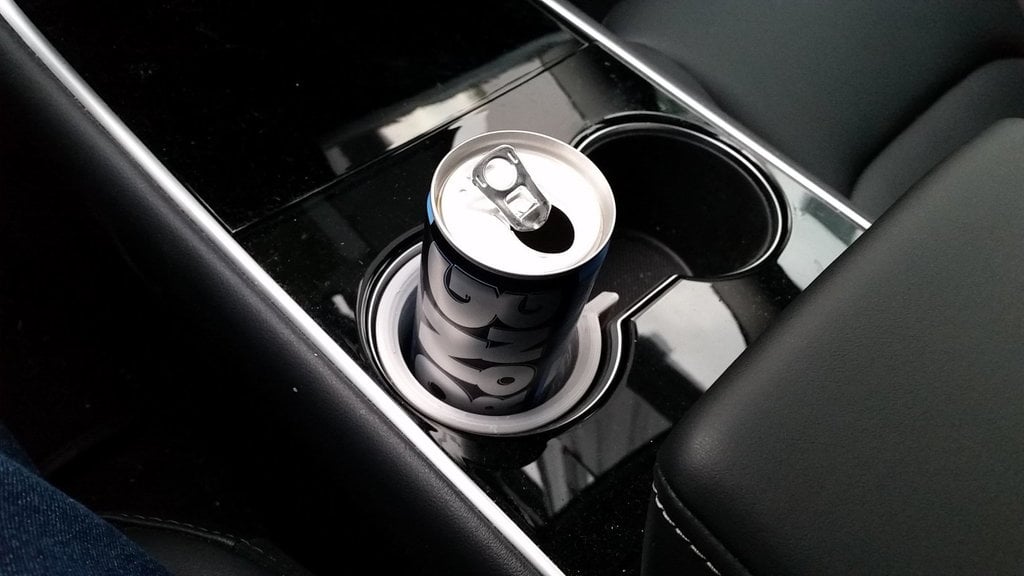 Questo portabottiglie per bevande energetiche è progettato specificamente per la Tesla Model 3. Si adatta sia alle lattine di bevande energetiche da 250 ml (diametro ~53 mm) che a quelle da 330 ml (diametro ~58 mm) e le tiene saldamente in posizione anche quando si preme a fondo il pedale. Tuttavia, grandi quantità di liquido possono fuoriuscire e danneggiare la console tra i sedili anteriori, il tetto e i sedili posteriori della tua auto se la lattina è aperta e piena per più di ~1/3.
