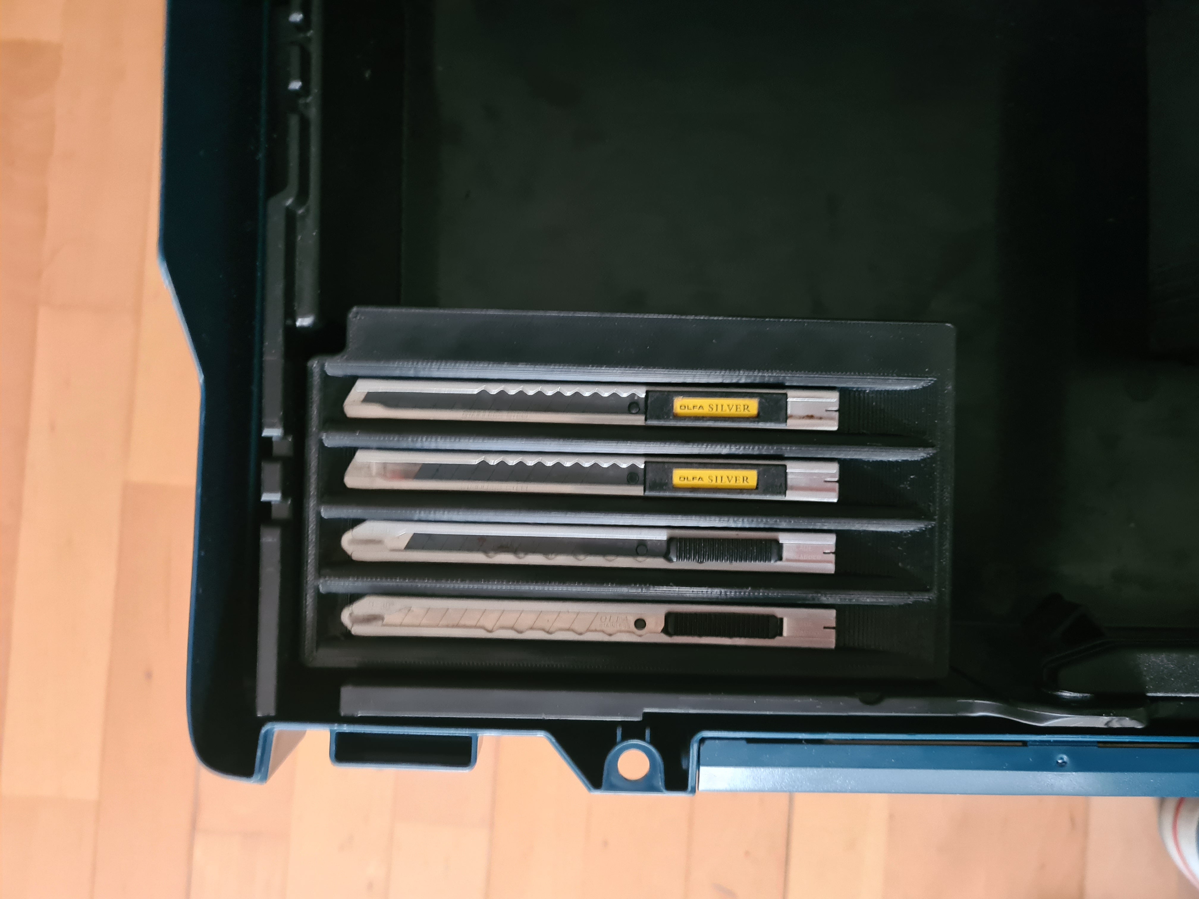 Questa scatola modulare per coltelli è progettata per integrarsi perfettamente nel tuo sistema BOSCH L-Boxx o Sortimo, in particolare con gli inserti sospesi LB 238/374. Offre una soluzione di archiviazione organizzata per i tuoi utensili da taglio, in modo da averli sempre a portata di mano, sia che tu stia lavorando con pellicole, imballaggi o altri materiali che richiedono tagli precisi.