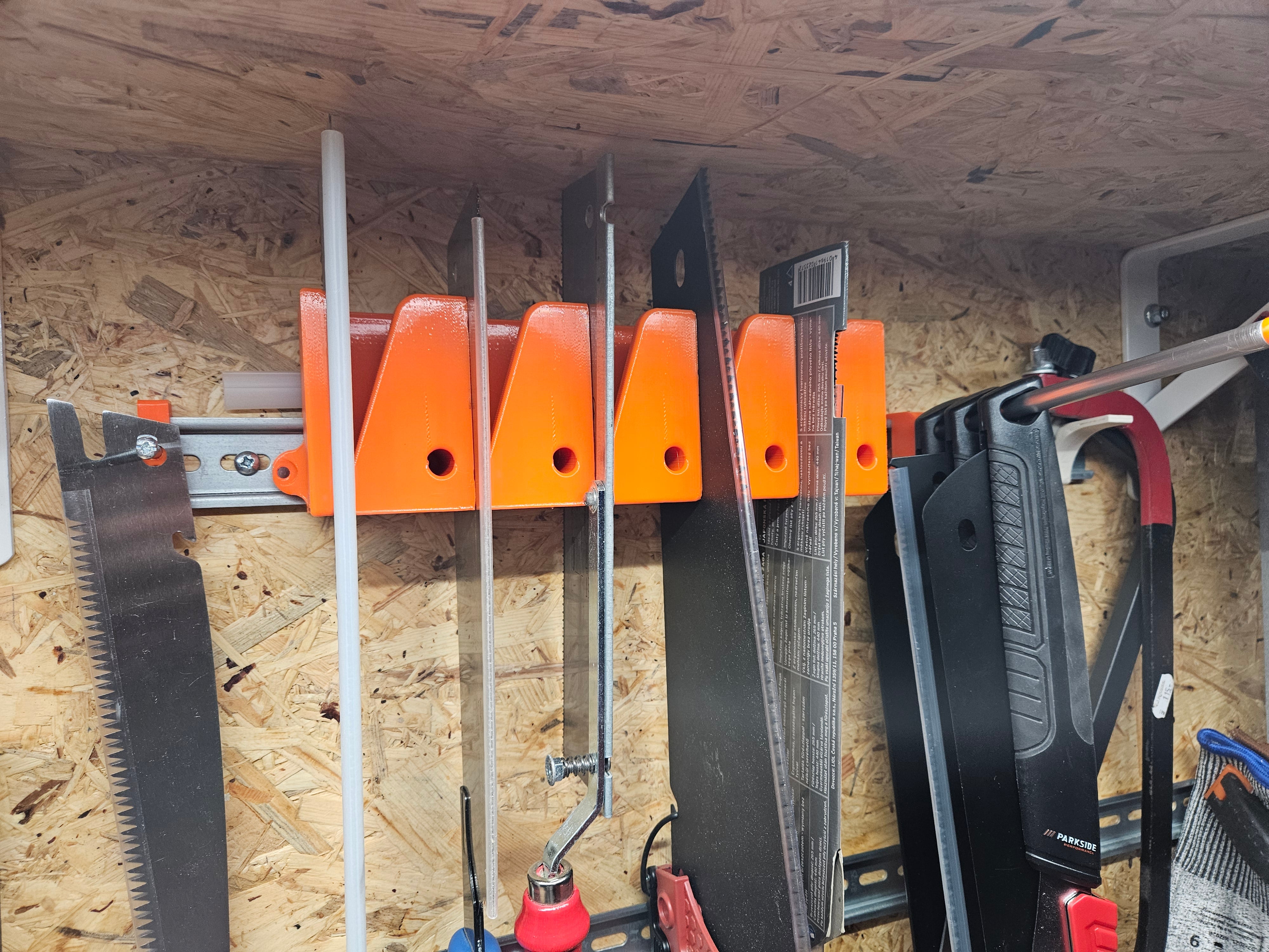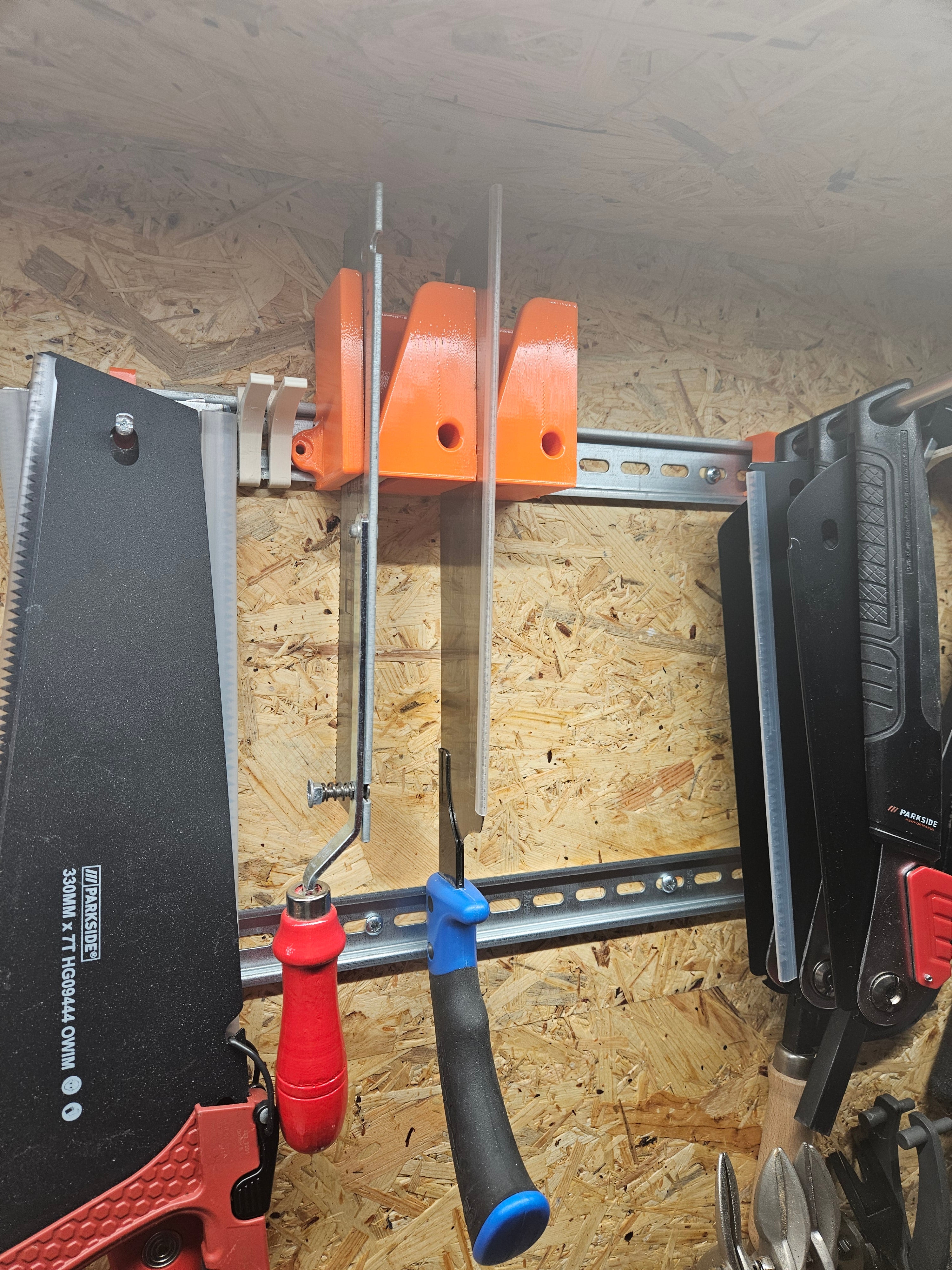 - Stoccaggio efficiente delle seghe su sistemi di guide DIN.