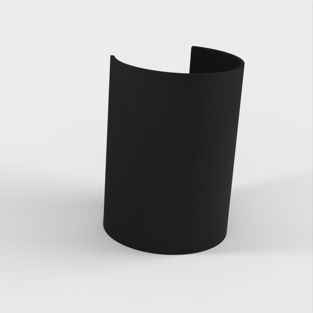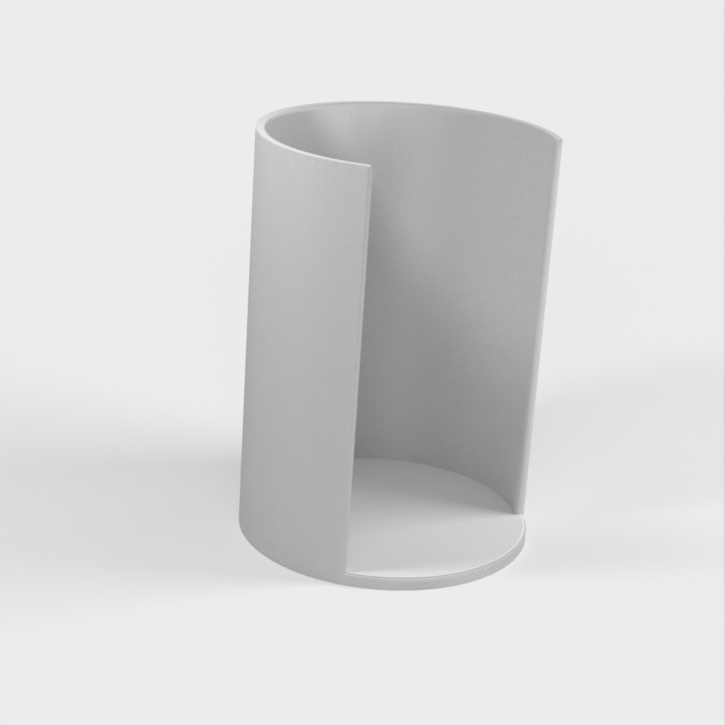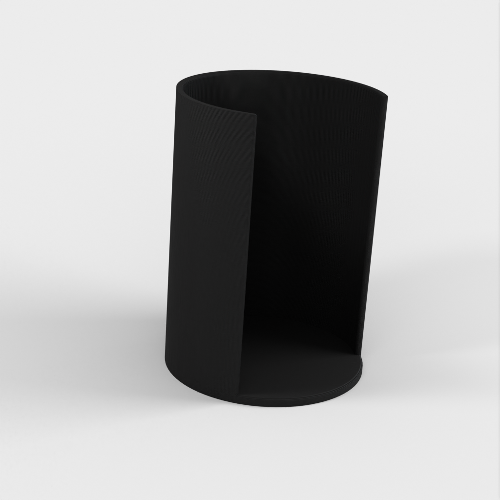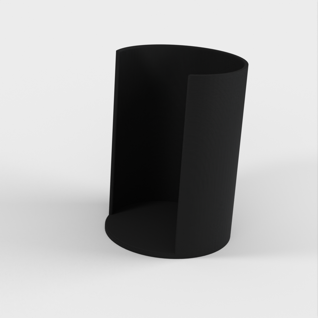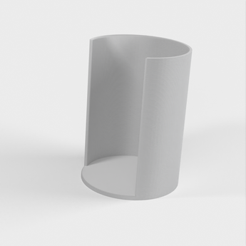 Portafiltro Aeropress (alto), con spazio per due pacchi filtri completi contemporaneamente. Ha pareti e fondo più sottili per velocizzare la stampa. Le dimensioni rilevanti sono ID 66 mm con un arco tagliato di 110 gradi. Un filtro a doppia pila è di circa 90 mm, leggermente più alto per lasciare spazio allo stantuffo.