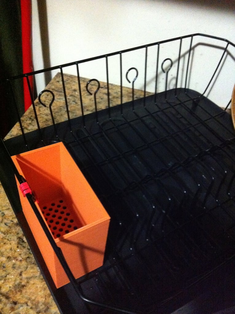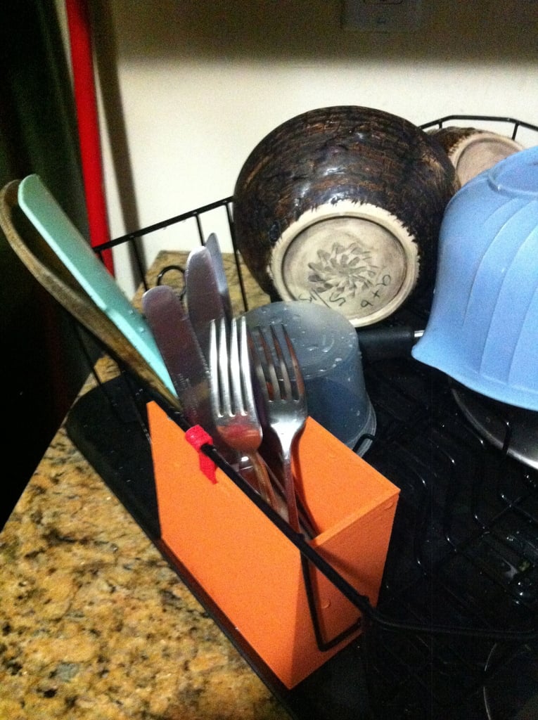 Portaposate per il vostro scolapiatti, dotato di ganci e scoli. È la soluzione perfetta per organizzare le stoviglie, per riporre le posate in modo ordinato e facile da raggiungere e per far defluire l'acqua con facilità. L'aggiunta ideale a qualsiasi cucina!