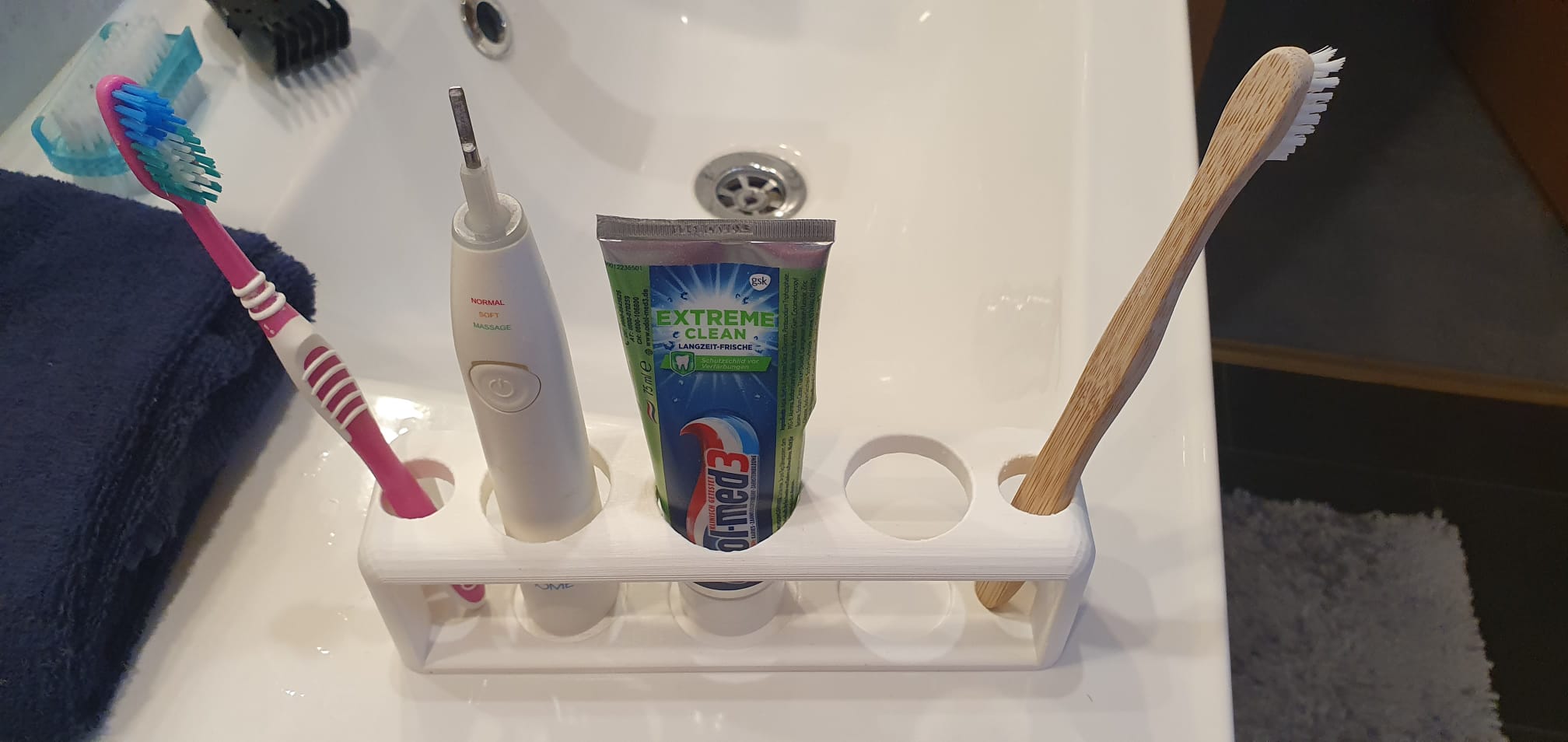 Porta spazzolino per 2 spazzolini normali e 2 elettrici con spazio per il dentifricio