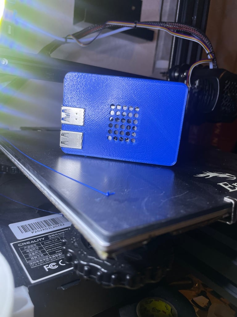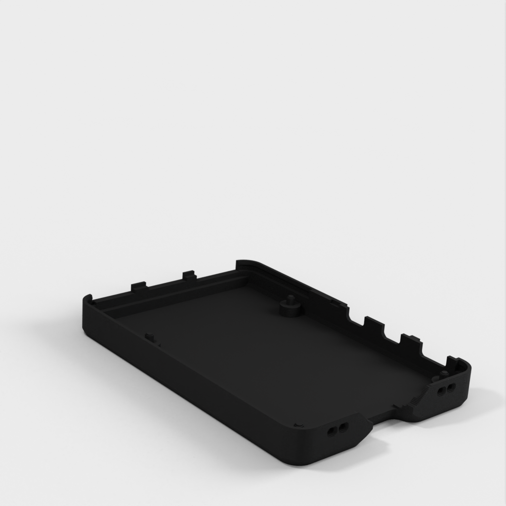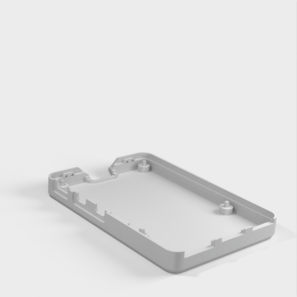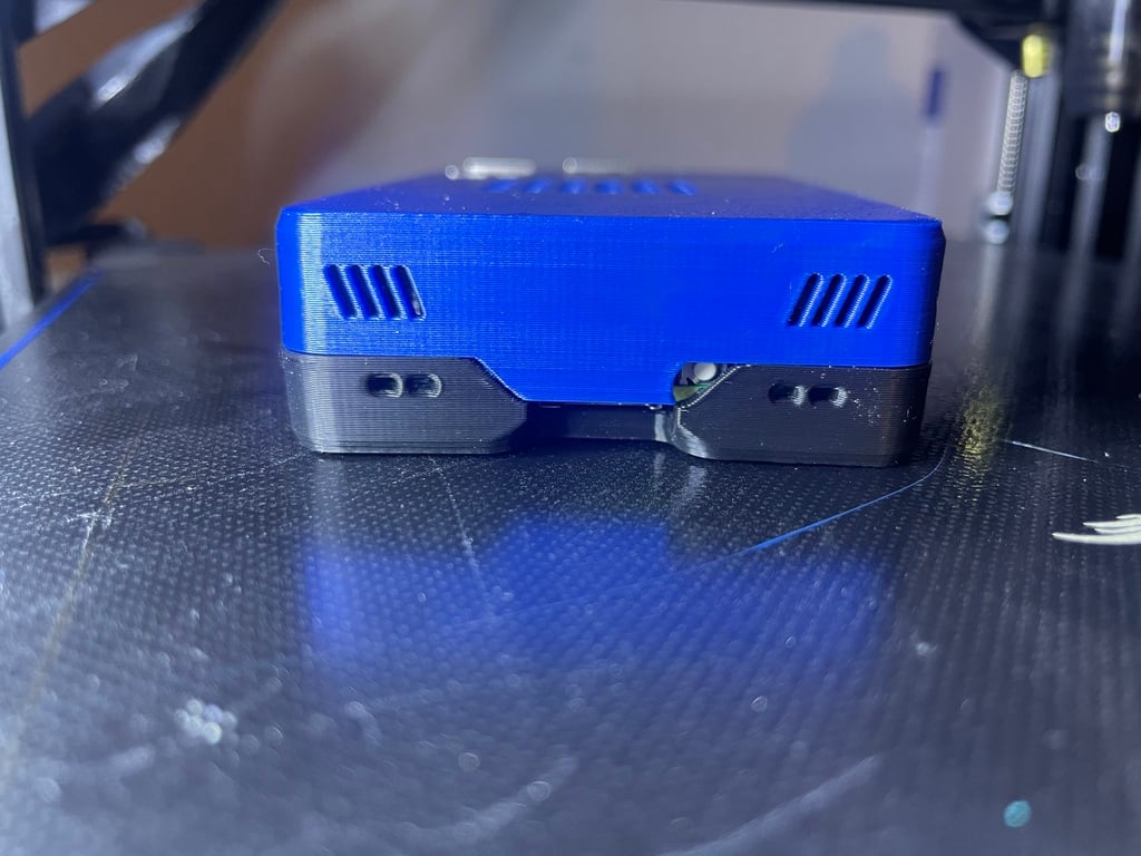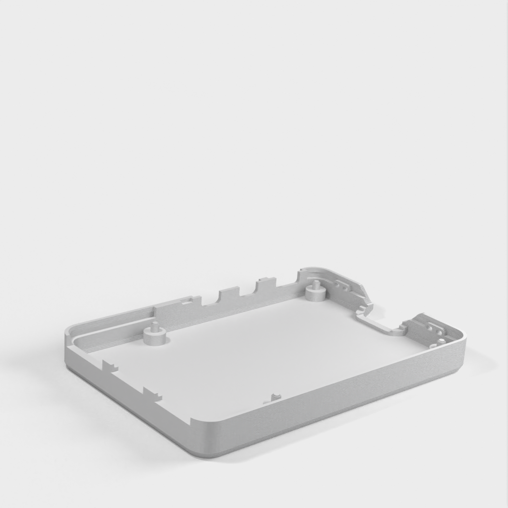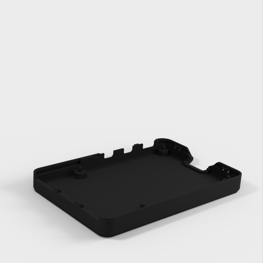 Custodia semplice per il Raspberry Pi 5 del 2023. Le modifiche includono il riposizionamento dei connettori USB e LAN, la rimozione del jack per le cuffie e l'aggiunta di una piccola apertura per il pulsante di reset. Sono stati aggiunti dei fori di ventilazione per adattarsi al radiatore originale.