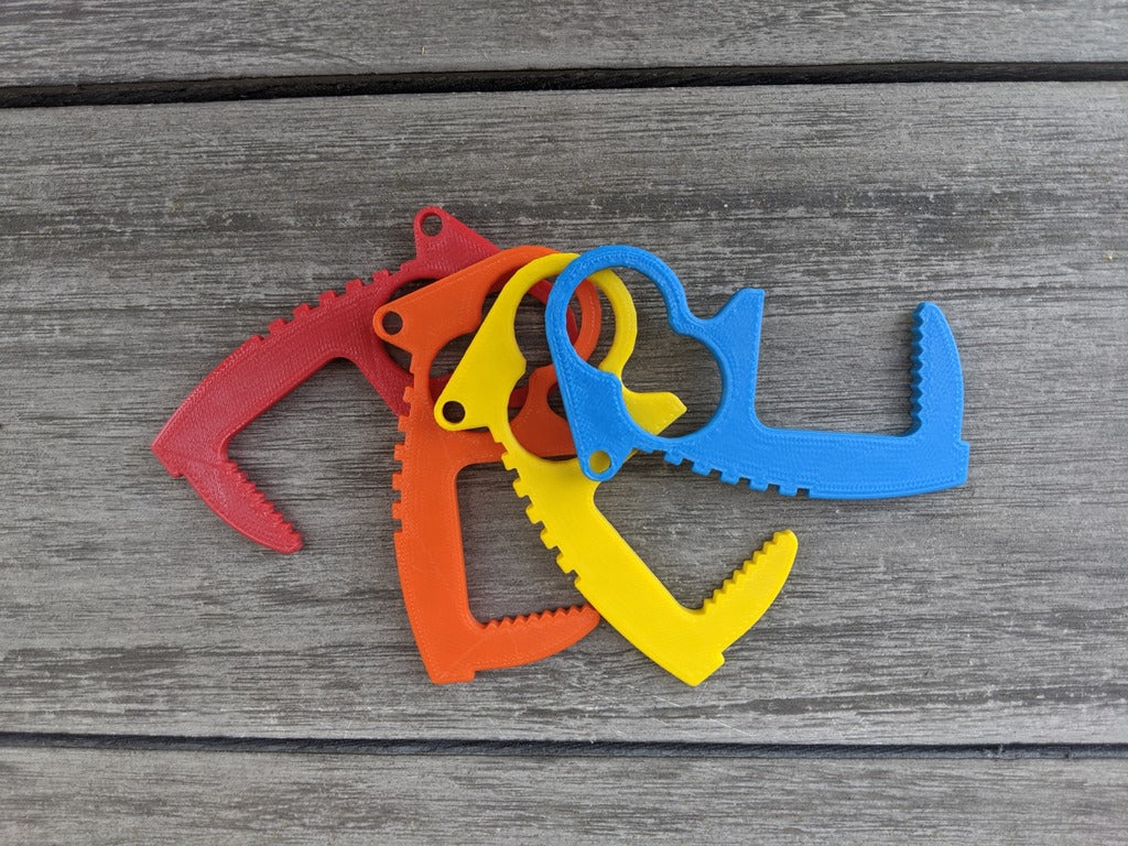 Evita il contatto diretto con maniglie, interruttori, tastiere e molti altri oggetti con questo portachiavi apriporta senza contatto. Grazie al suo esclusivo design a due fori, consente di avere quattro diversi stili di presa. Le impugnature superiori e le leve per il pollice offrono una leva maggiore rispetto ad altri modelli, mentre la superficie interna dei denti fornisce l'attrito necessario per l'utilizzo. Ogni apriporta pesa solo 4 grammi, il che li rende ideali per i portachiavi, le tasche e le borse dei laptop, senza aggiungere alcuna differenza di peso. Il posizionamento del foro del portachiavi è stato progettato per tenere le chiavi saldamente in mano e fornire una maggiore leva. Funziona bene anche all'estremità di un cordino.