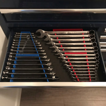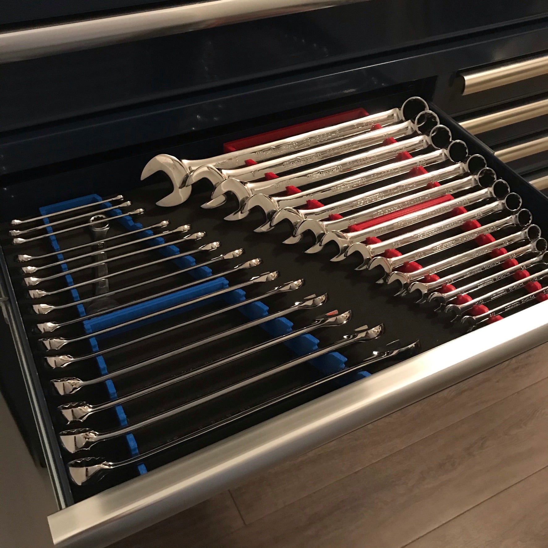 Il set è ottimizzato per adattarsi alla maggior parte dei cassetti standard delle cassette degli attrezzi, progettato specificamente per cassetti con dimensioni di 22 pollici di larghezza e 15 pollici di profondità. Il design compatto assicura che la distanza tra ogni chiave sia ridotta al minimo, massimizzando la capacità di stoccaggio senza occupare spazio non necessario.
