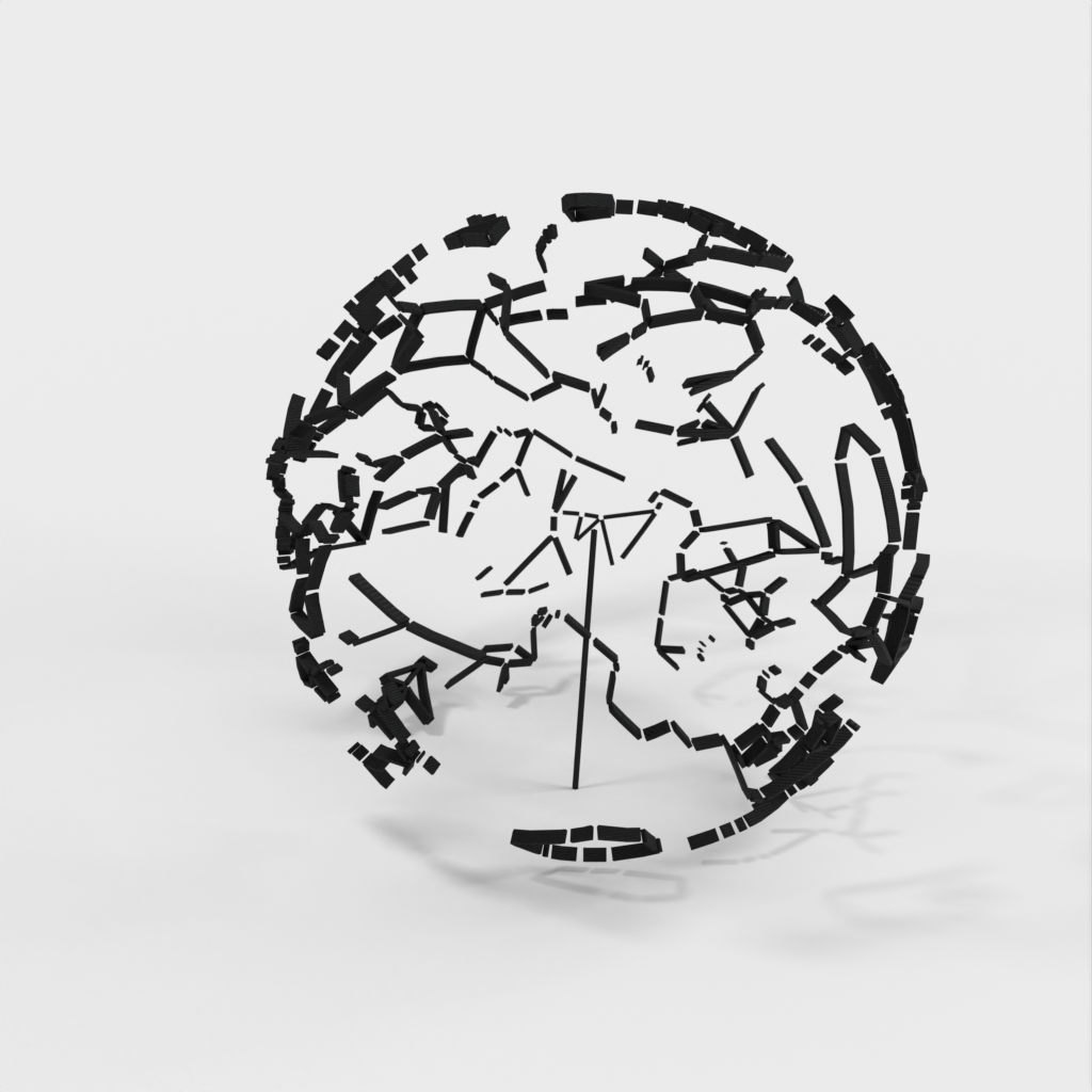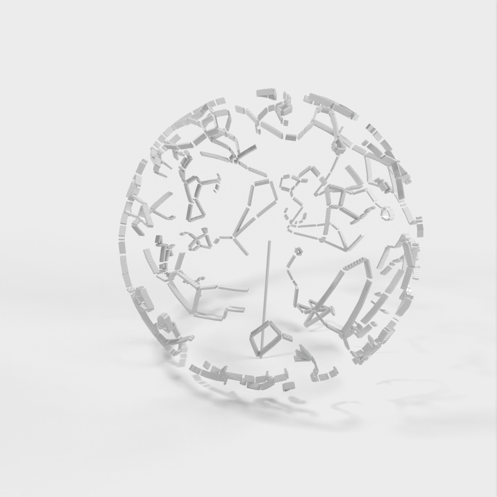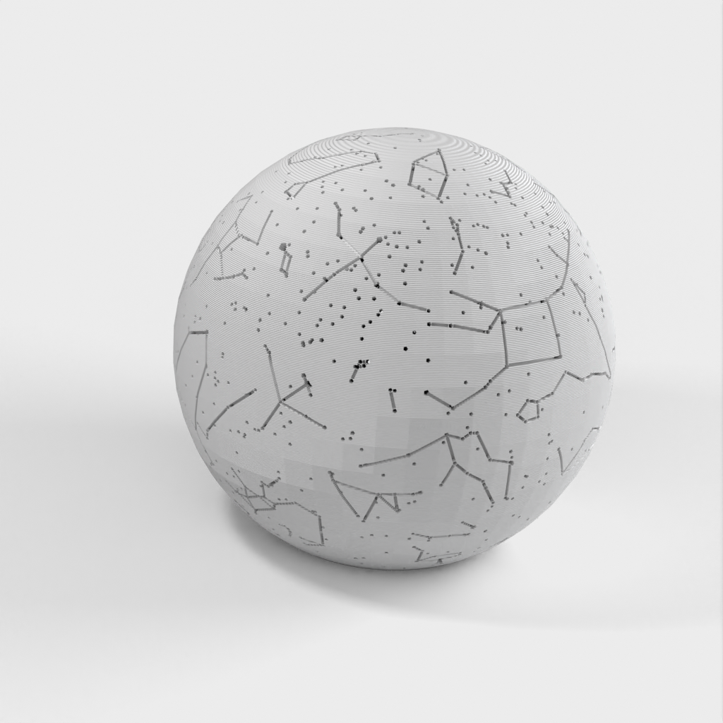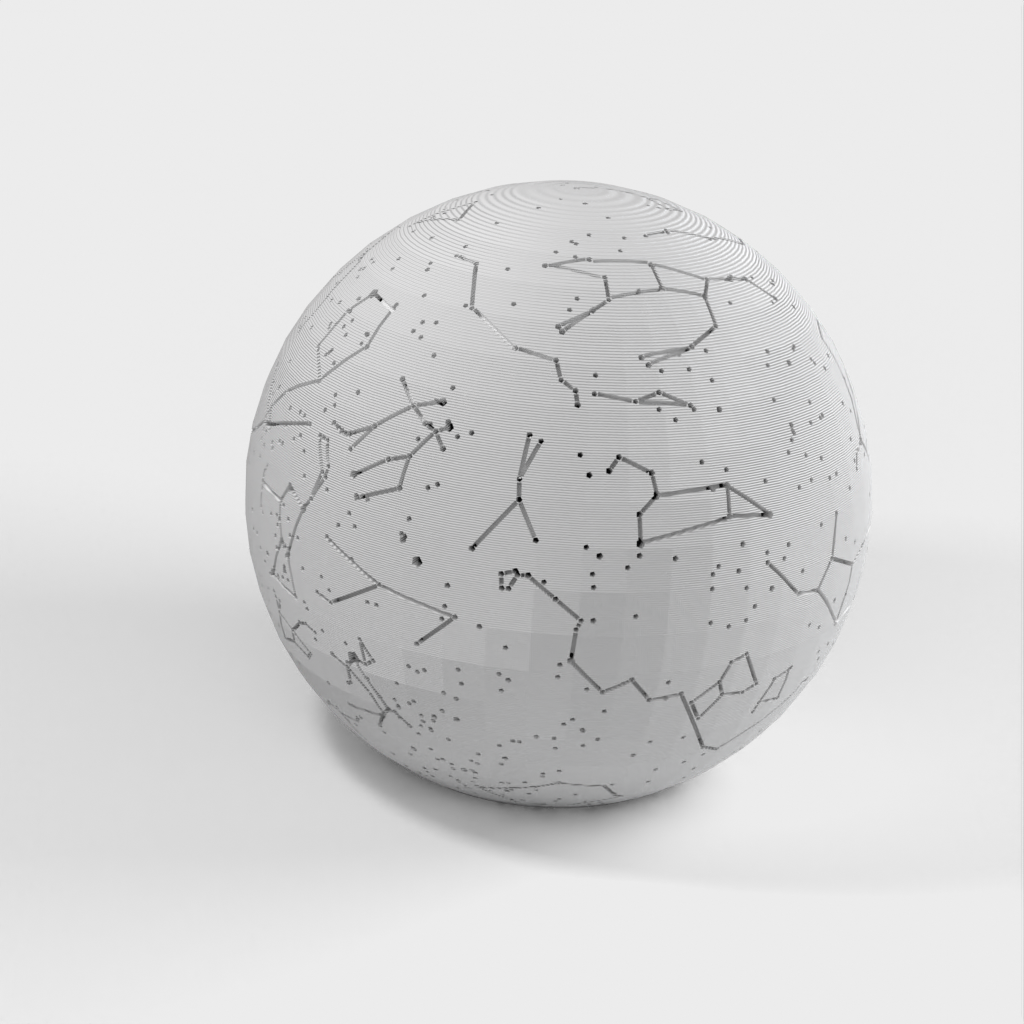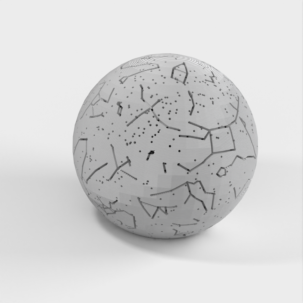 Questo prodotto è un'estensione dei modelli Celestial Sphere e può generare file STL per una sfera celeste. Con Openscad è possibile modificare molti parametri e produrre un modello 3D della sfera celeste, che può includere più di 1700 delle stelle più luminose e fino a 50 costellazioni. Il modello include anche i piani per una montatura di tipo equatoriale, completa di alimentazione per l'illuminazione a LED all'interno della sfera.