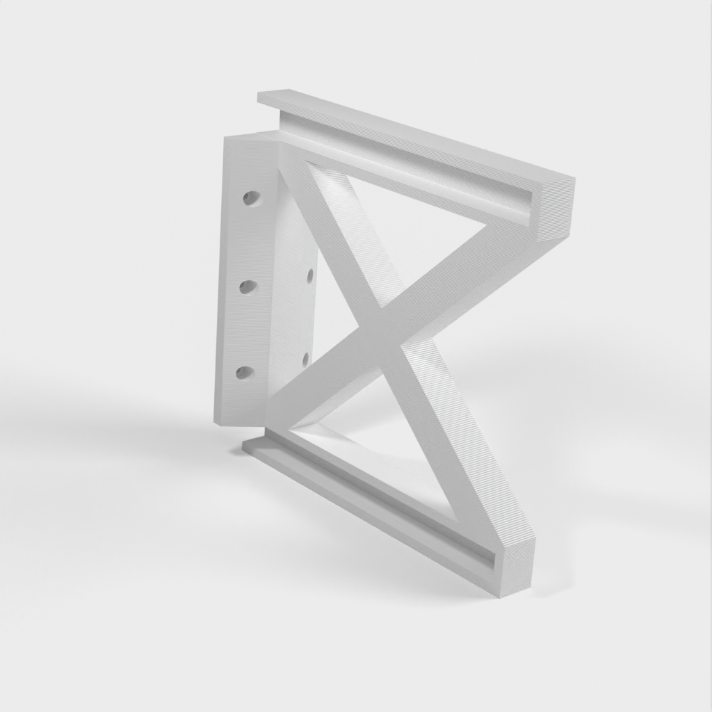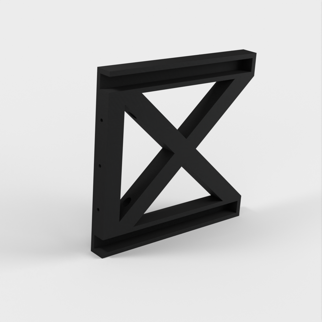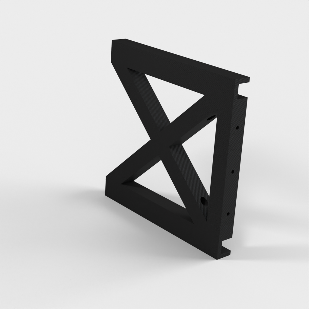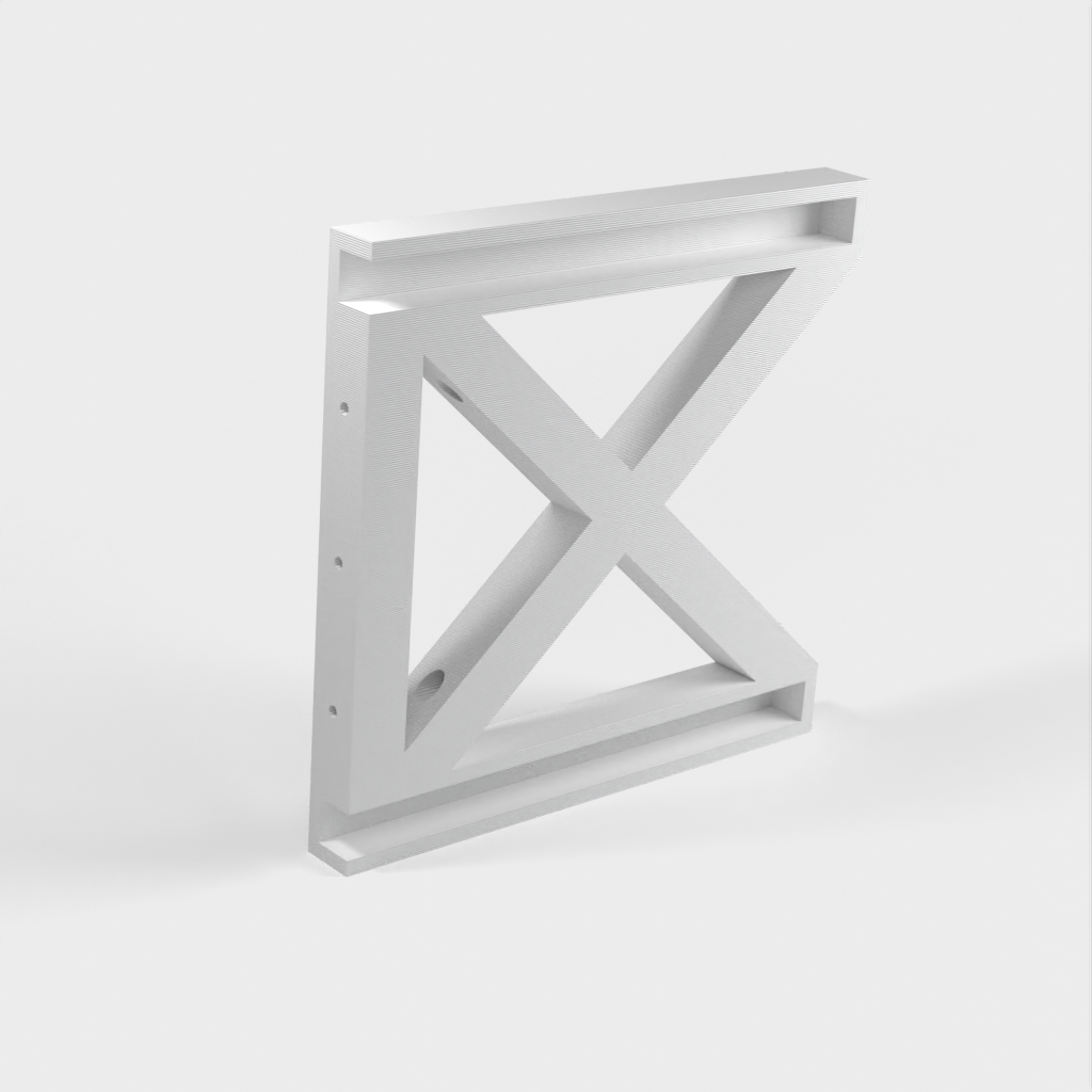 Questa staffa è stata progettata per adattarsi agli scaffali Burhult di Ikea, ma si adatta a qualsiasi scaffale delle stesse dimensioni. I fori della staffa si adattano a viti con larghezza della testa di 8,5 mm e larghezza della filettatura di 4 mm. Per evitare che la mensola si stacchi dalla parete, sono necessari dei tasselli. Per realizzare 4 di queste staffe, è necessario circa 1 kg di filamento. Le dimensioni della staffa sono 200,5 mm x 196,85 mm x 20,25 mm.
