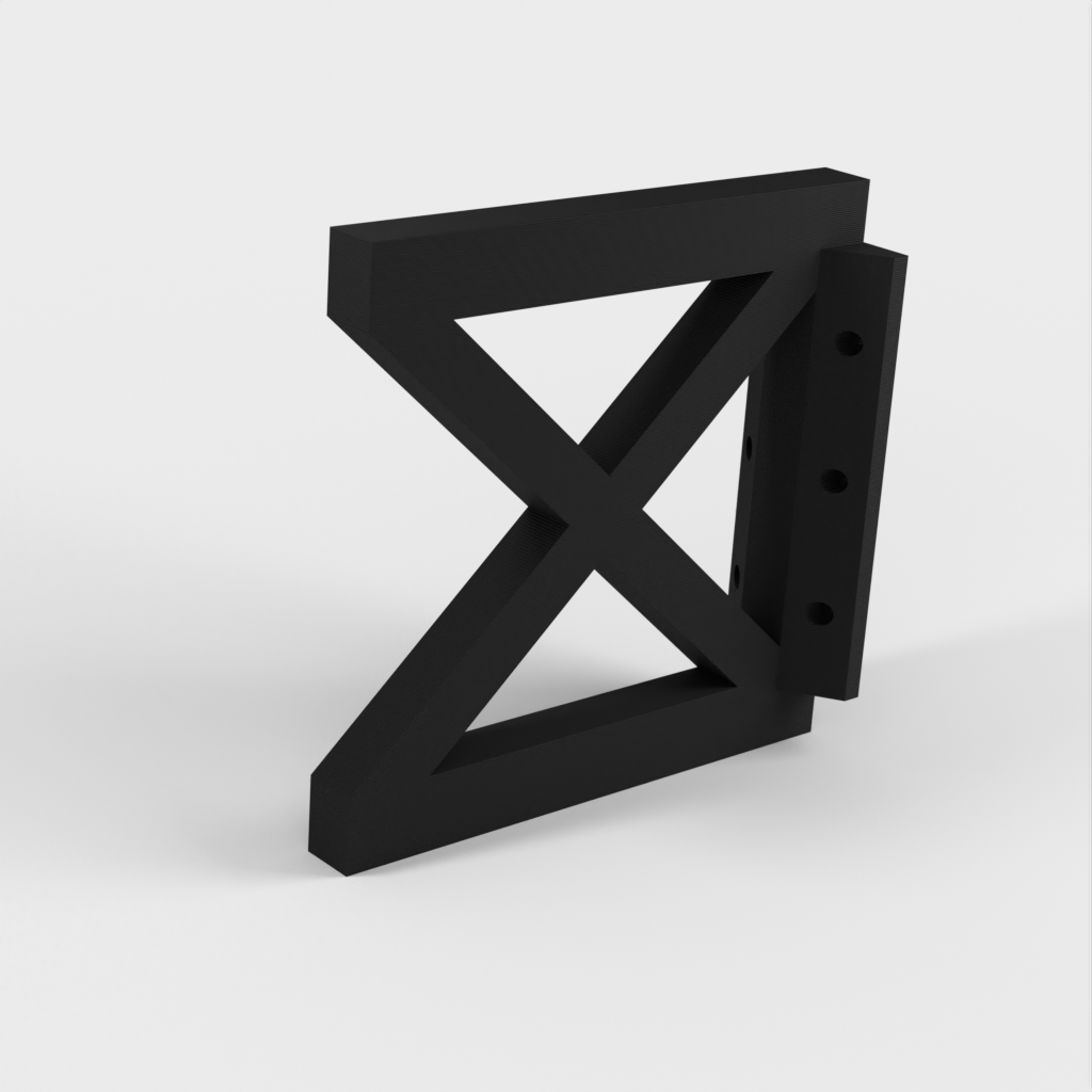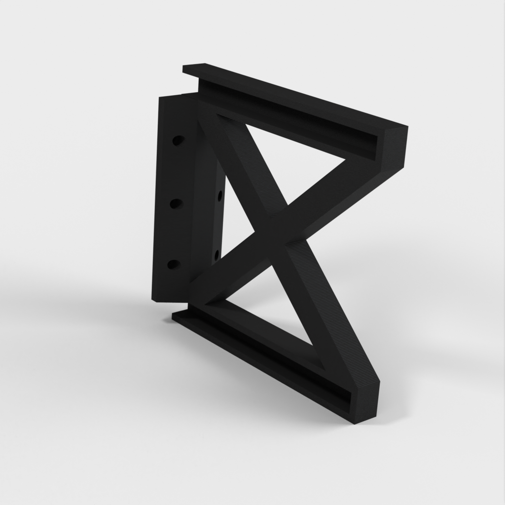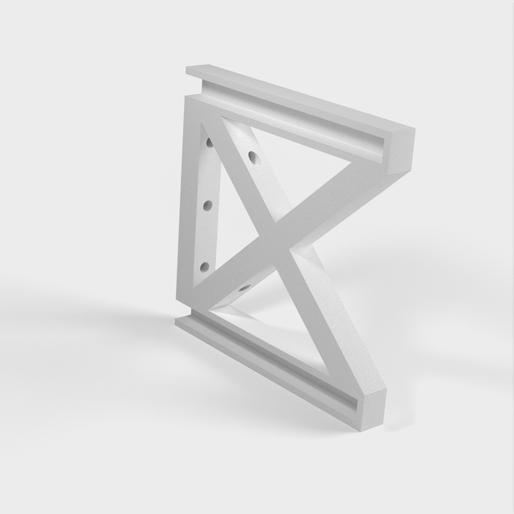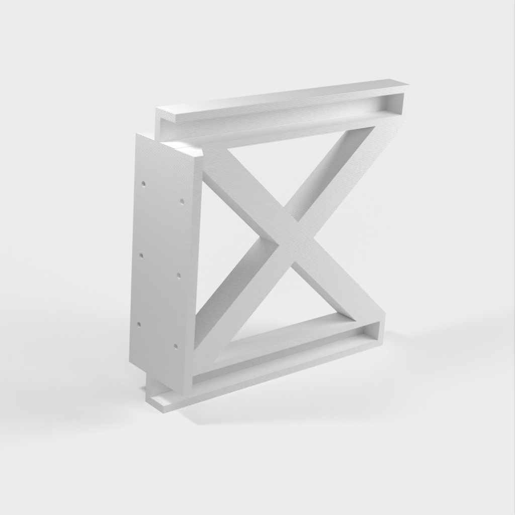 Questa staffa è stata progettata per adattarsi agli scaffali Burhult di Ikea, ma si adatta a qualsiasi scaffale delle stesse dimensioni. I fori della staffa si adattano a viti con larghezza della testa di 8,5 mm e larghezza della filettatura di 4 mm. Per evitare che la mensola si stacchi dalla parete, sono necessari dei tasselli. Per realizzare 4 di queste staffe, è necessario circa 1 kg di filamento. Le dimensioni della staffa sono 200,5 mm x 196,85 mm x 20,25 mm.