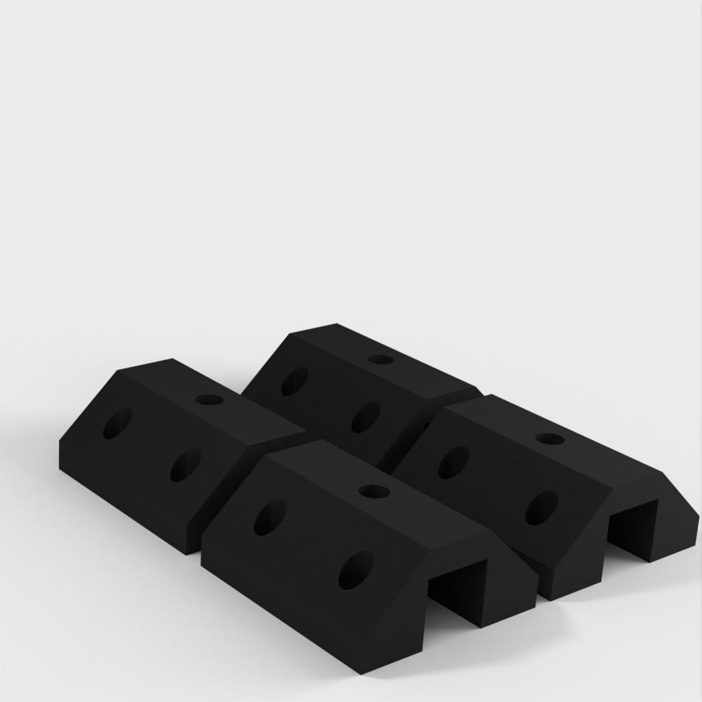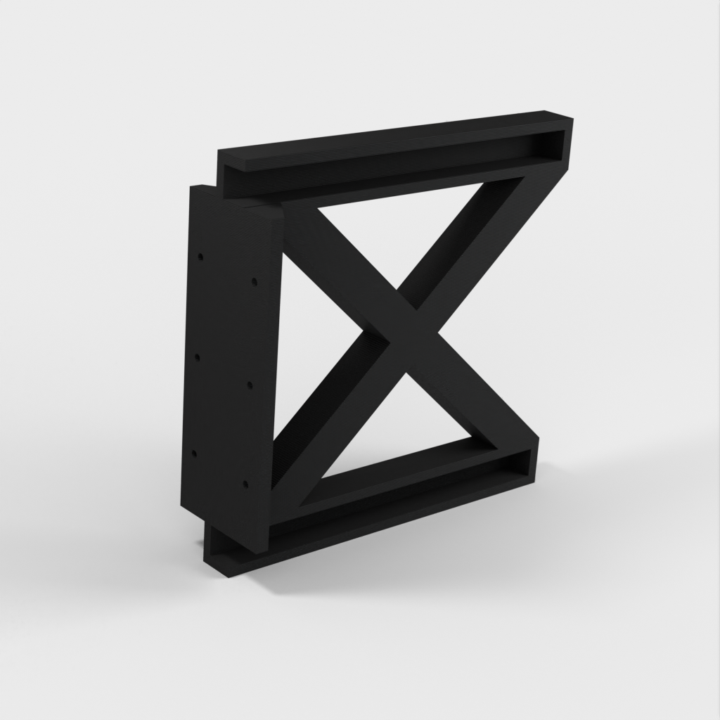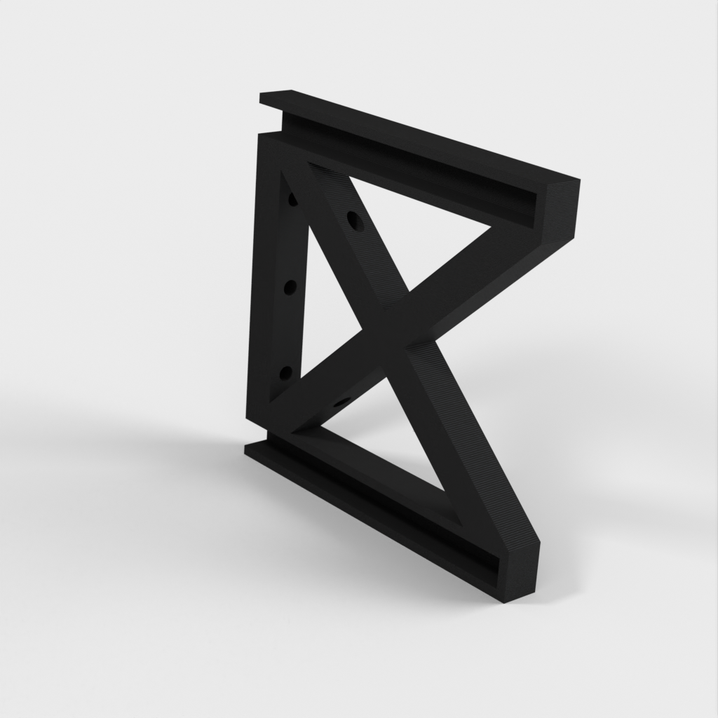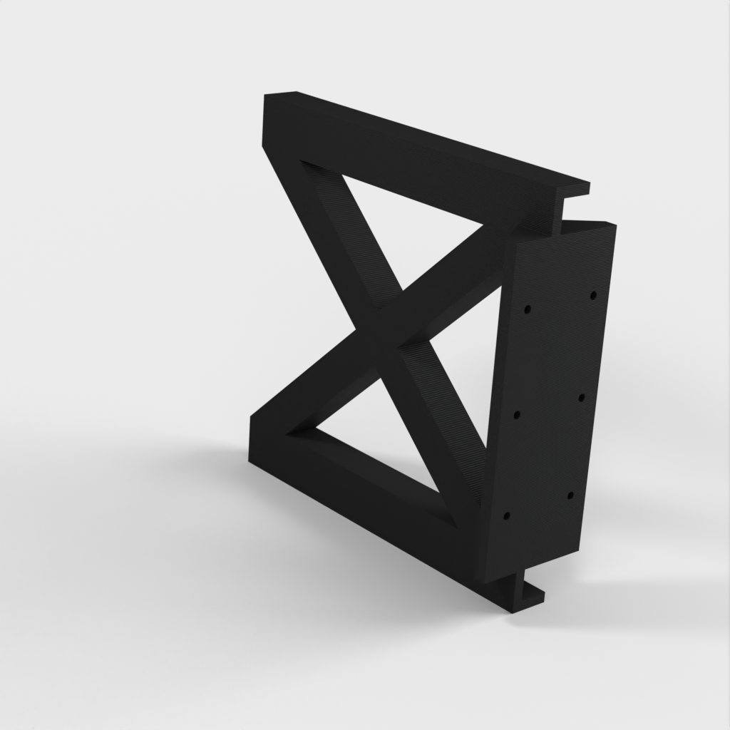 Questa staffa è stata progettata per adattarsi agli scaffali Burhult di Ikea, ma si adatta a qualsiasi scaffale delle stesse dimensioni. I fori della staffa si adattano a viti con larghezza della testa di 8,5 mm e larghezza della filettatura di 4 mm. Per evitare che la mensola si stacchi dalla parete, sono necessari dei tasselli. Per realizzare 4 di queste staffe, è necessario circa 1 kg di filamento. Le dimensioni della staffa sono 200,5 mm x 196,85 mm x 20,25 mm.