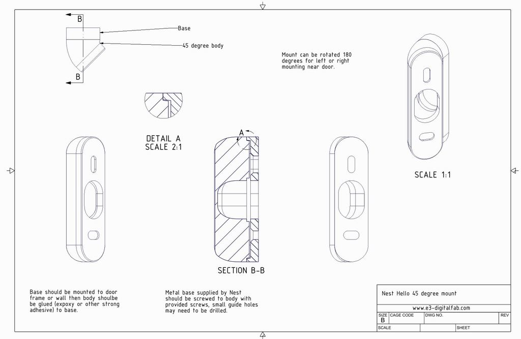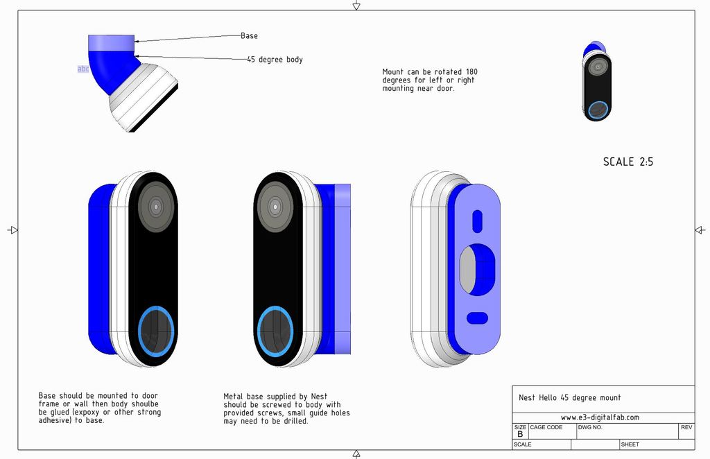 Questa staffa di montaggio è progettata specificamente per il campanello Google Nest Hello e garantisce che il campanello sia in un perfetto angolo di 45 gradi. Il set è composto da due parti: una base piatta che può essere facilmente montata su una parete o sul telaio della porta con viti e un adattatore a 45 gradi che si allinea con la base e mantiene il campanello nella posizione ottimale.
