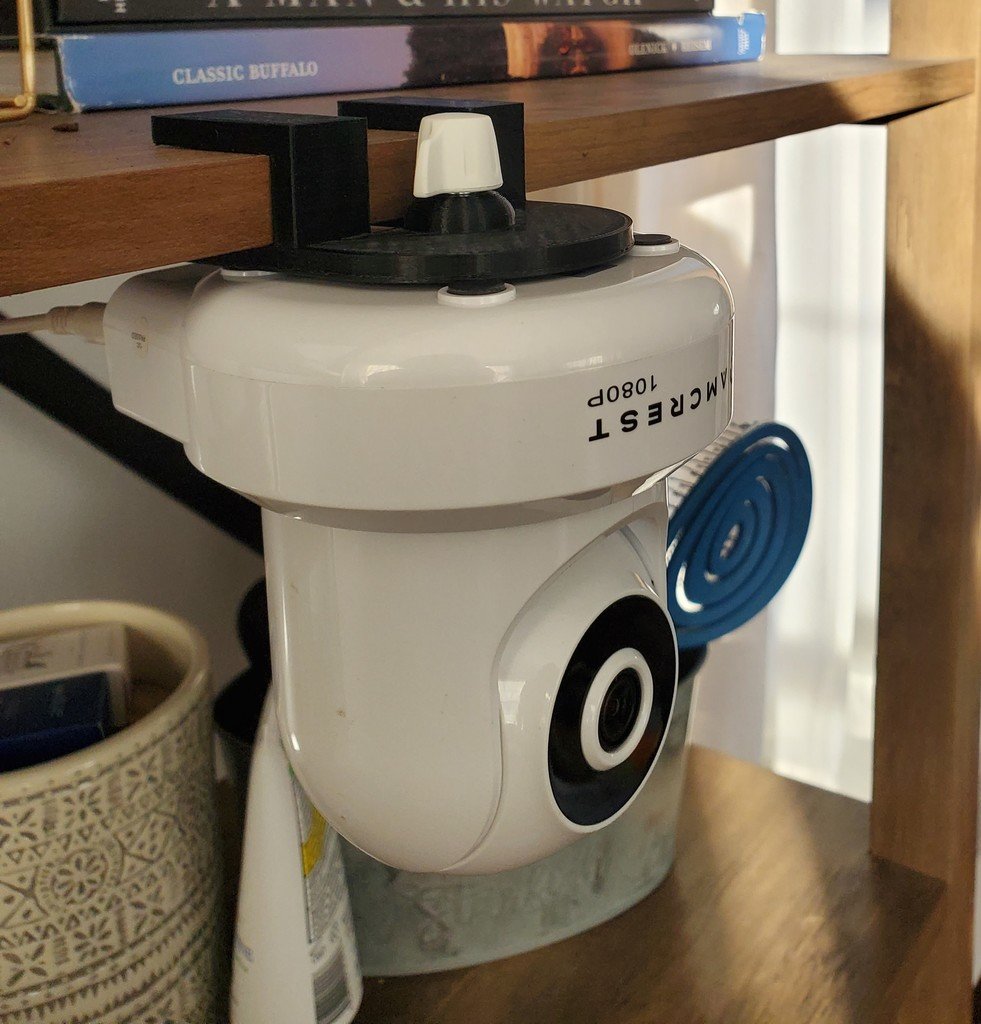 Questa staffa è progettata per fornire una soluzione di montaggio stabile e discreta per la tua telecamera di sorveglianza. La staffa è progettata specificamente per adattarsi alle telecamere Wi-Fi Amcrest ed è ideale per essere posizionata sotto una libreria con uno spessore di circa 15,3 mm. Offre un metodo pratico per monitorare una stanza senza che la telecamera occupi spazio sulle superfici.