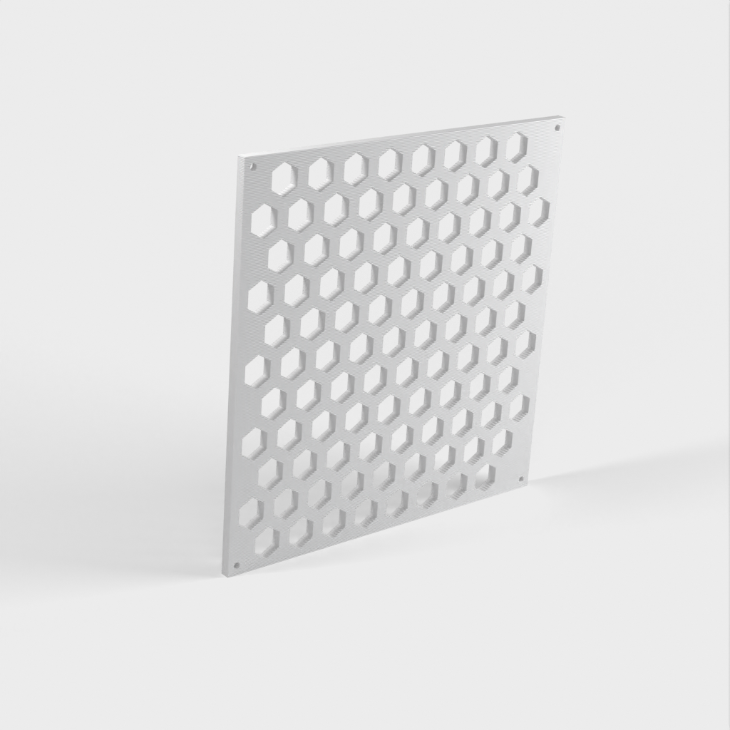 Un case HTPC - pfSense mini-ITX con un coperchio remixato a nido d'ape. Il coperchio è progettato con un motivo a nido d'ape che consente al radiatore della CPU di scaricare il calore, a differenza del coperchio solido originale. Questo permette al computer di lavorare in modo più efficiente e riduce il rischio di surriscaldamento.