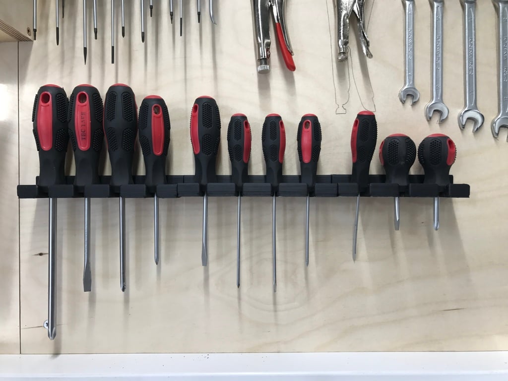 Il supporto per cacciavite è la soluzione migliore per organizzare e tenere in ordine i tuoi cacciaviti. La facile conservazione dei tuoi cacciaviti li rende facilmente accessibili quando ne hai bisogno. Il supporto può essere regolato secondo necessità utilizzando il link Onshape fornito, rendendolo ideale sia per officine private che per luoghi di lavoro professionali.