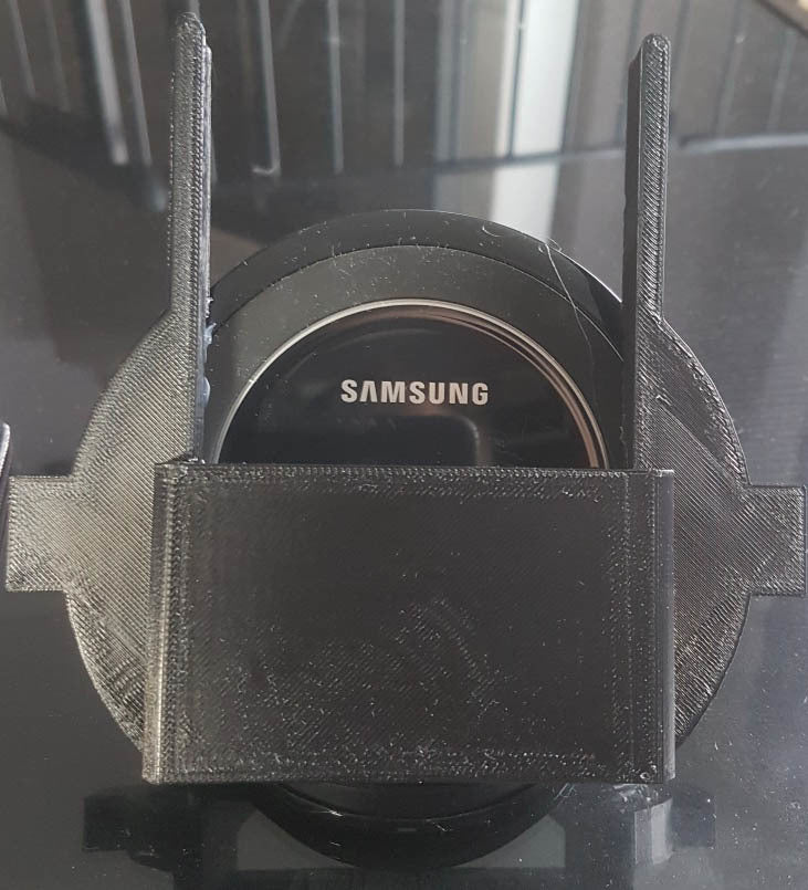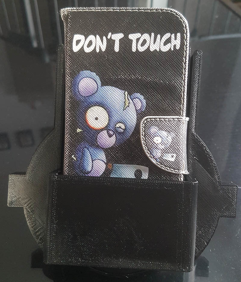 Un supporto per caricabatterie wireless Qi Tesla Model S per telefoni Samsung. Questo dispositivo funge da semplice supporto per telefono che puoi fissare a una piastra di ricarica Qi. È progettato per adattarsi perfettamente alla console Tesla Model S. È specificamente compatibile con il caricabatterie "Samsung Fast Charge", ma può essere facilmente regolato per altre piastre di ricarica Qi.