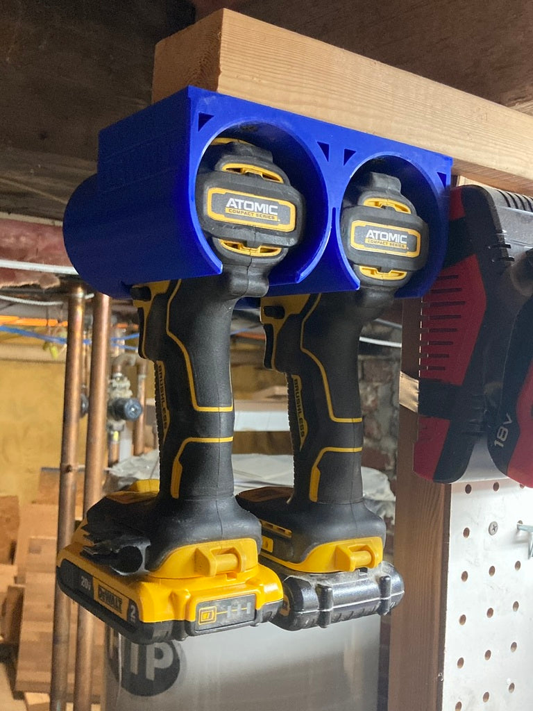 Supporto a mensola/soffitto adatto per 2 trapani avvitatori DeWALT DCD791 con impugnatura a pistola.
