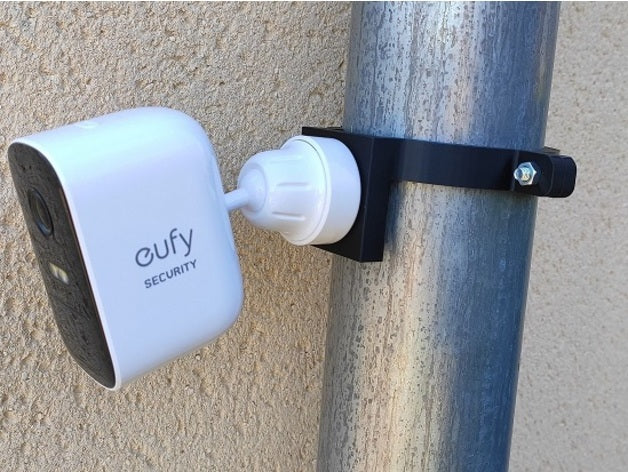 EUFY CAM 2C HOLDER tube 70mm è un supporto per EUFY CAM 2C, progettato per collegare la fotocamera a un tubo da 70 mm, in genere un tubo di scarico. Ciò ti consente di posizionare la videocamera in alto e in modo sicuro senza la necessità di viti o fori nel muro.