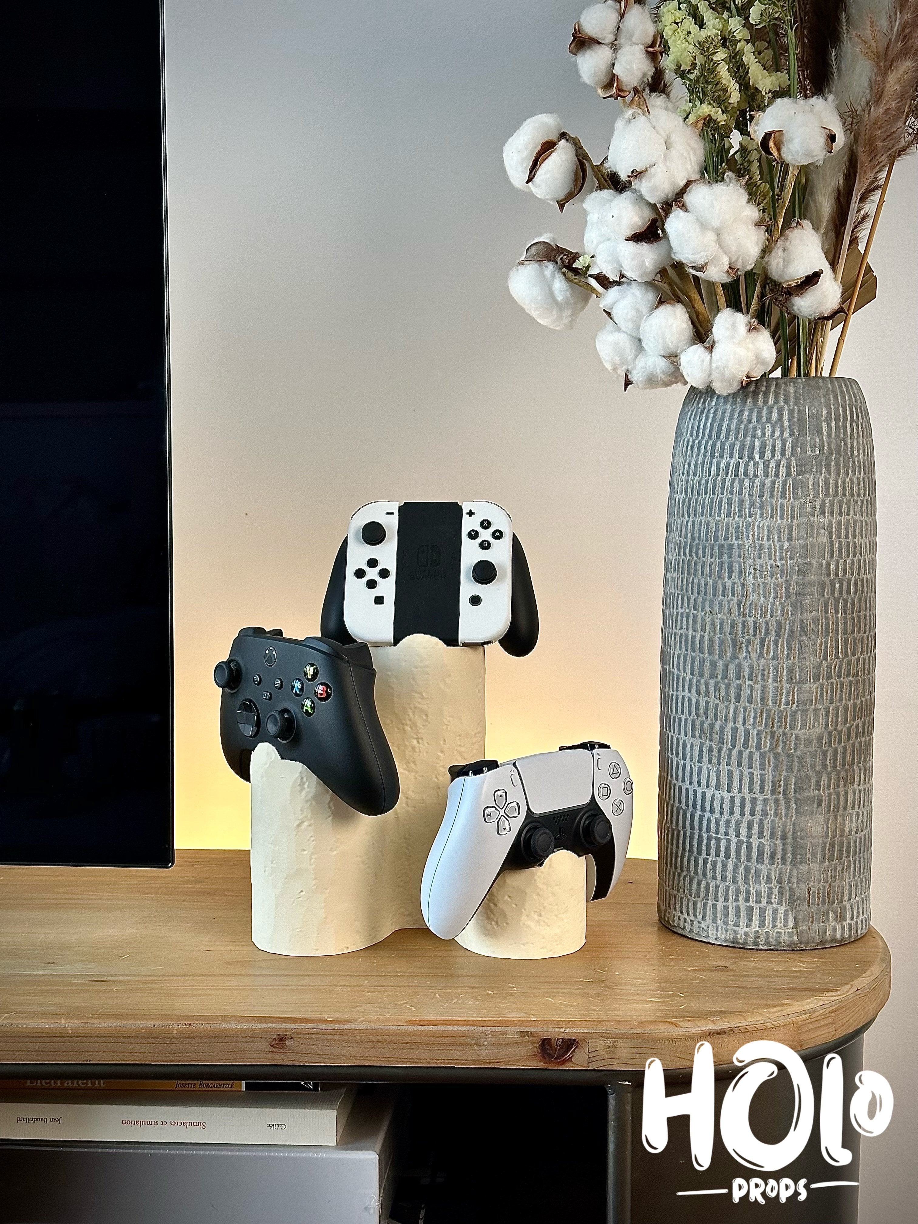 Questo stand offre un modo moderno per mantenere ordinata la tua area di gioco. È progettato per contenere fino a tre controller, compatibile con marchi come PlayStation, Xbox e Switch. Scegli tra una finitura liscia o ruvida per adattarla al tuo stile di arredamento. L'accessorio assicura che i tuoi controller siano organizzati e facilmente accessibili.