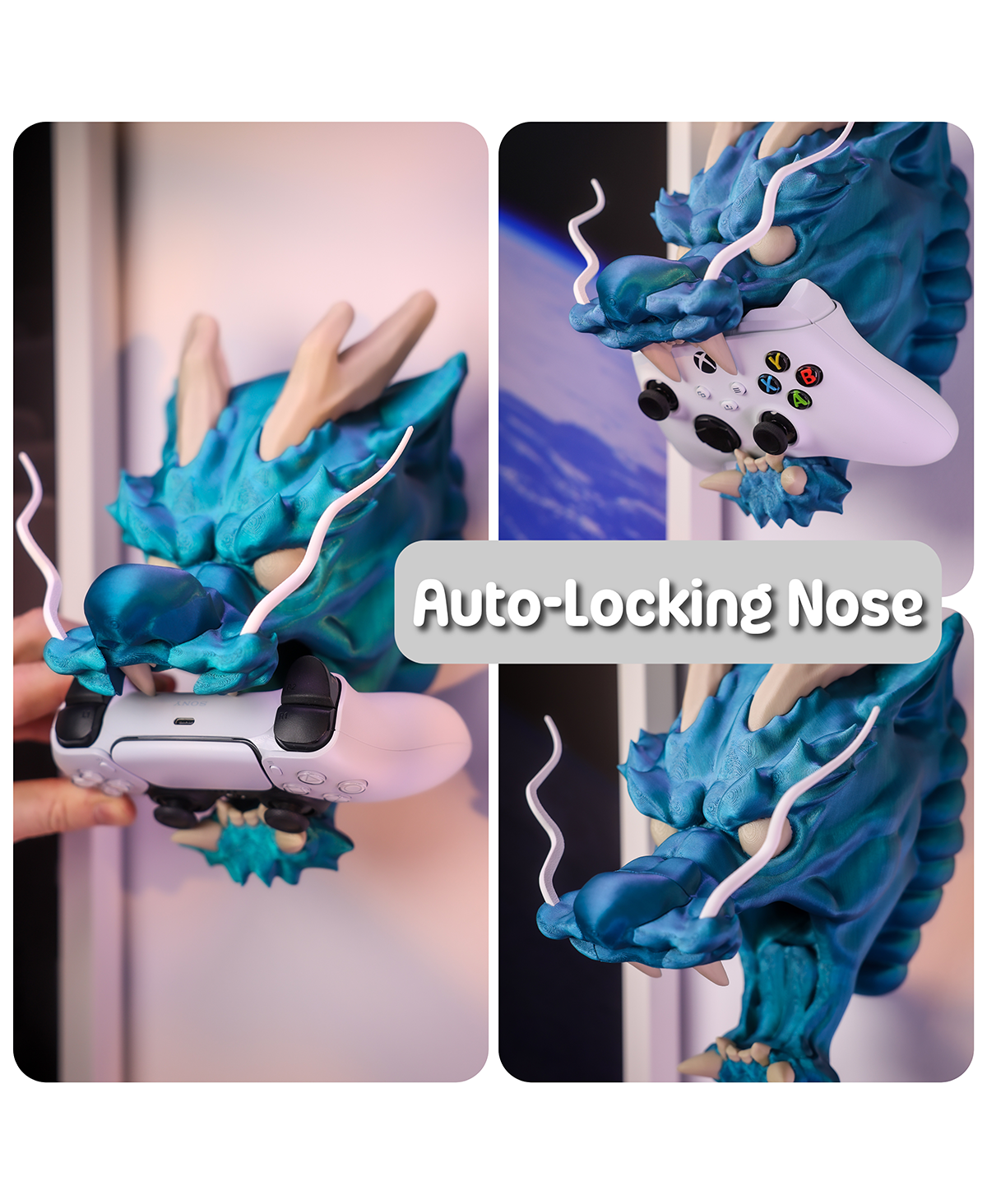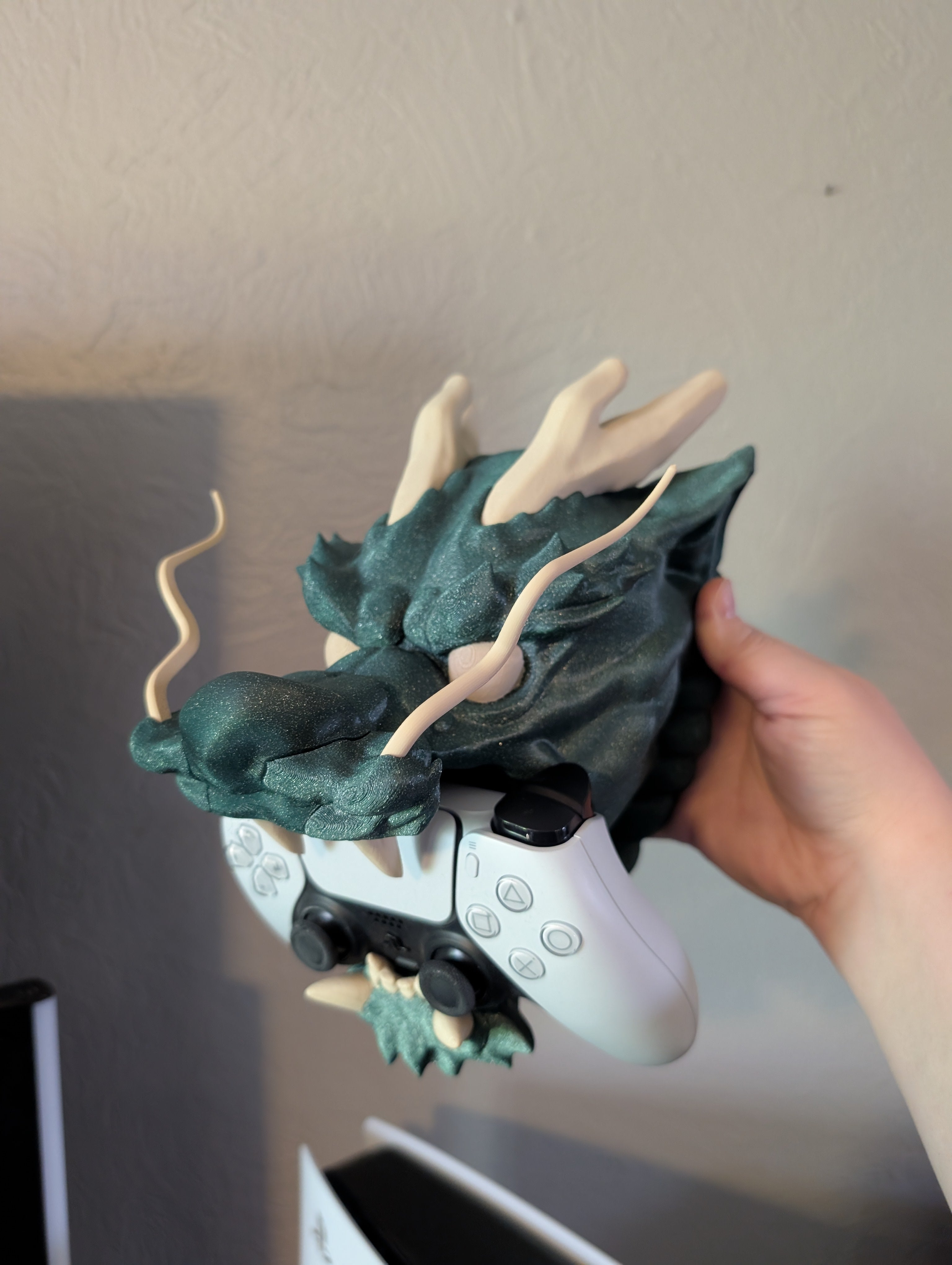 - Majestætisk dragehoved-design, der fungerer som en unik stander til din gamepad.