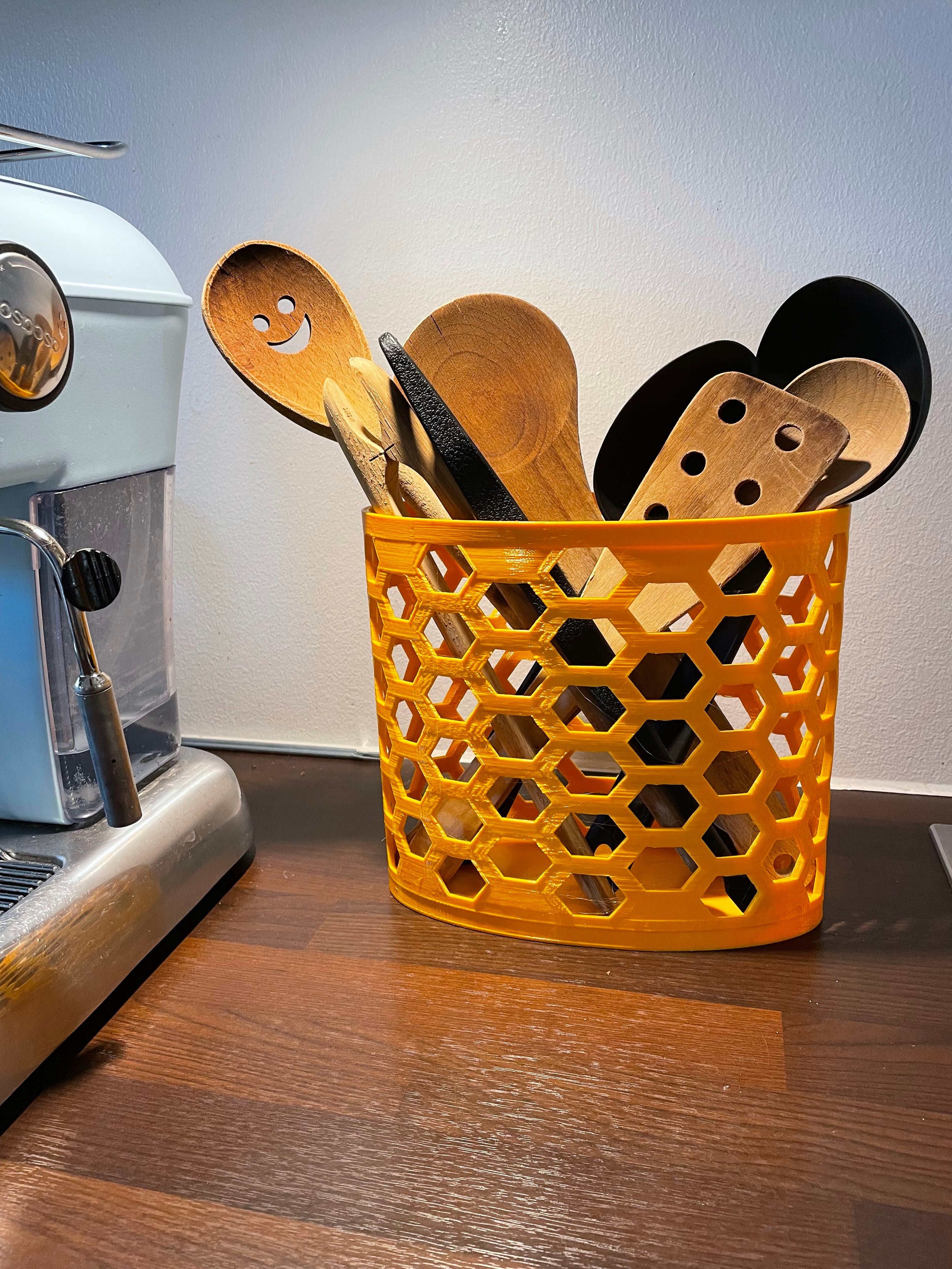 Questo sottile portautensili da cucina è perfetto per riporre gli utensili da cucina essenziali. Le dimensioni compatte lo rendono ideale per qualsiasi cucina e il colore giallo melone aggiunge un tocco di colore. Questo portautensili è più grande del 200% sull'asse delle x e più piccolo dell'80% sull'asse delle y rispetto a un modello standard.
