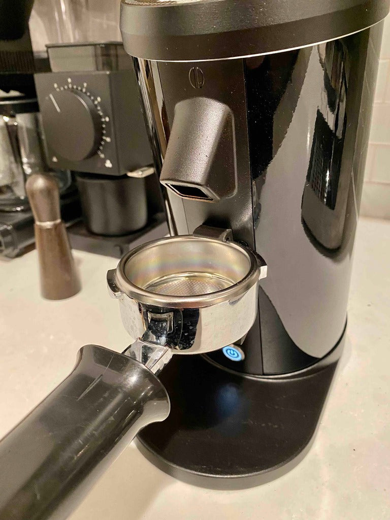 Questo portafiltro è progettato per ottimizzare il processo di preparazione del caffè per gli utenti dei macinacaffè Turin DF64, Solo o G-Iota. Offre una soluzione pratica per mantenere il portafiltro Gaggia Classic / Pro saldamente in posizione, risolvendo i comuni problemi di compatibilità che spesso si verificano con il supporto originale del macinacaffè a causa delle "alette" del portafiltro.