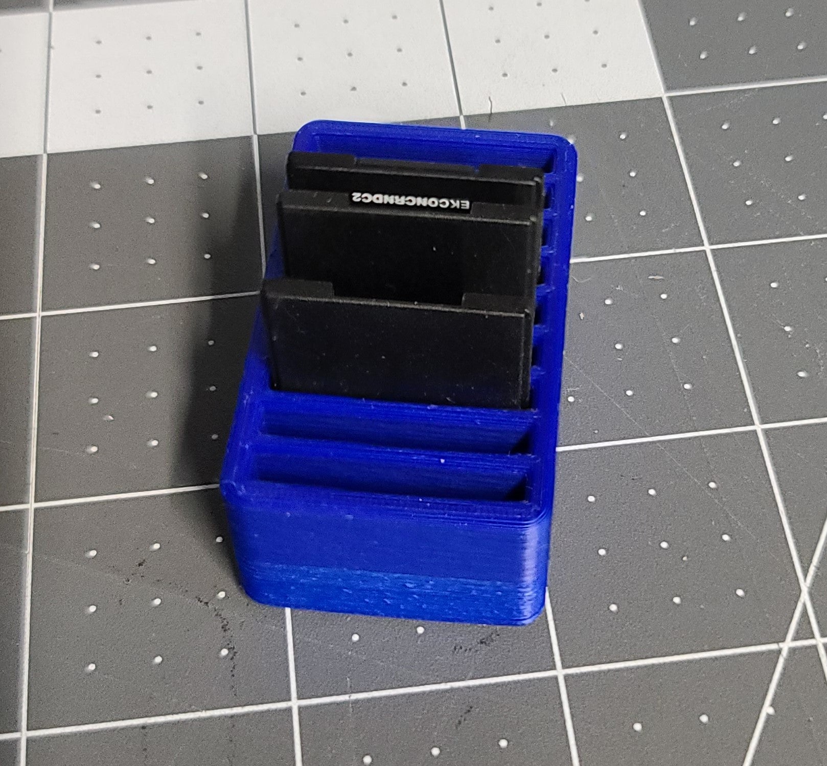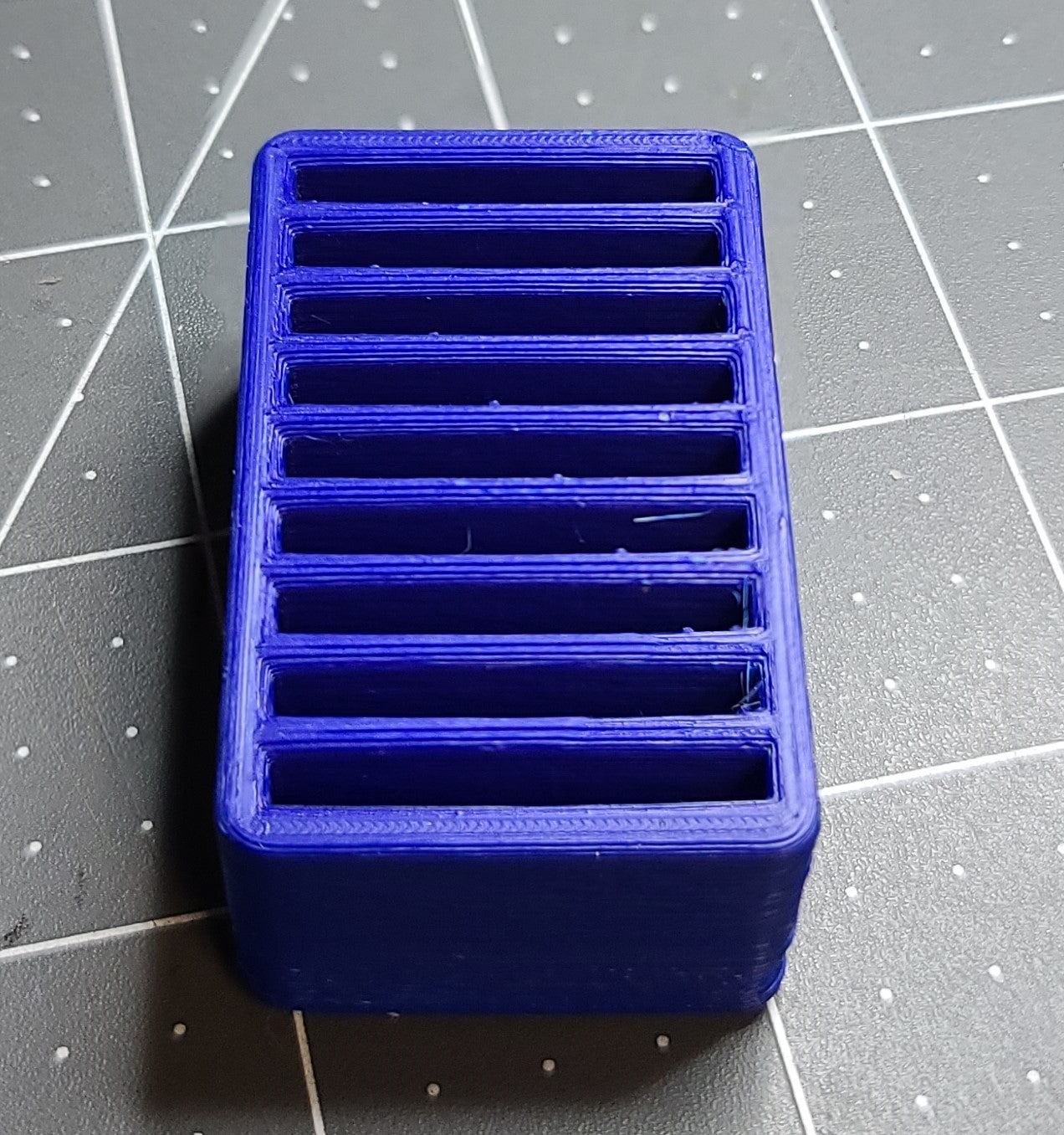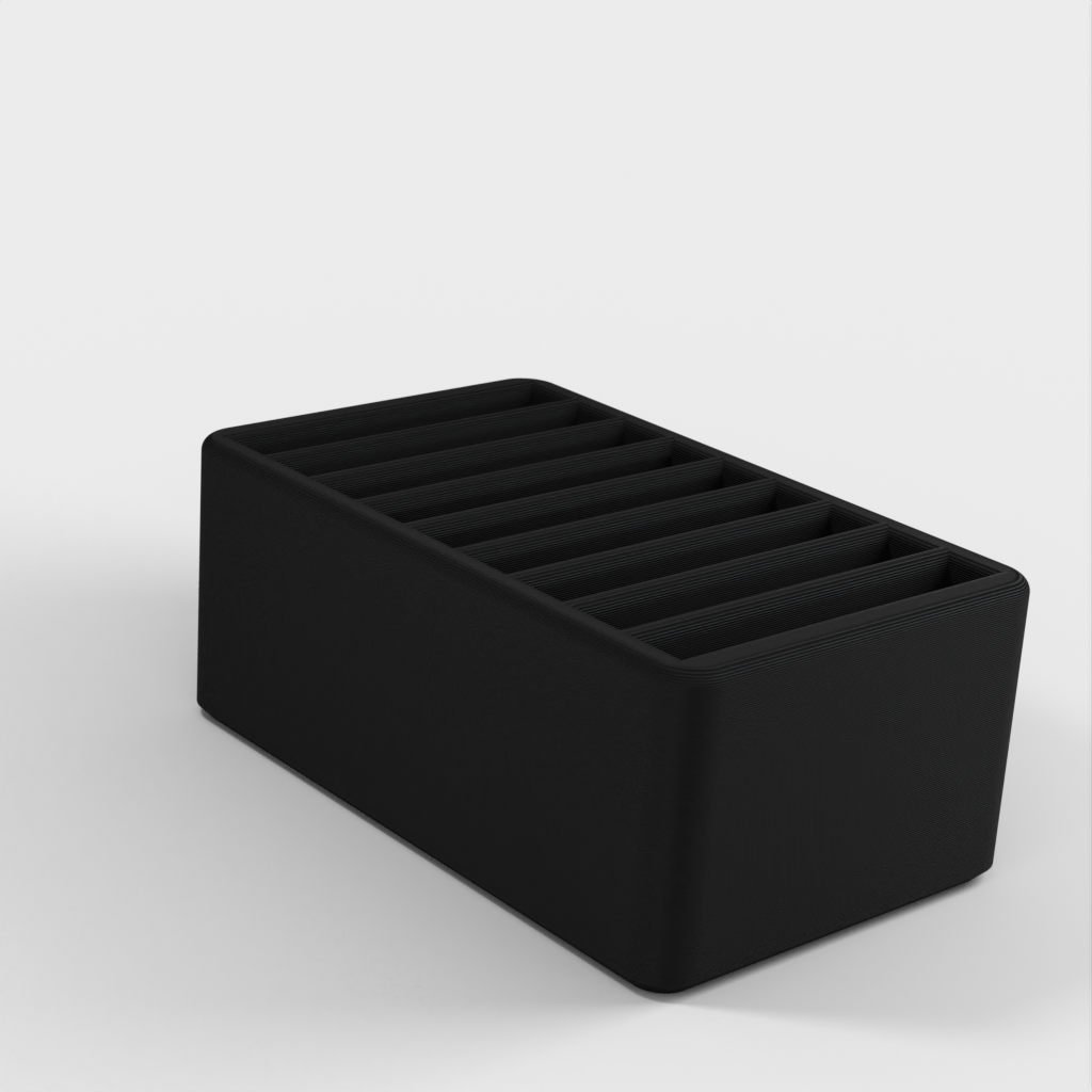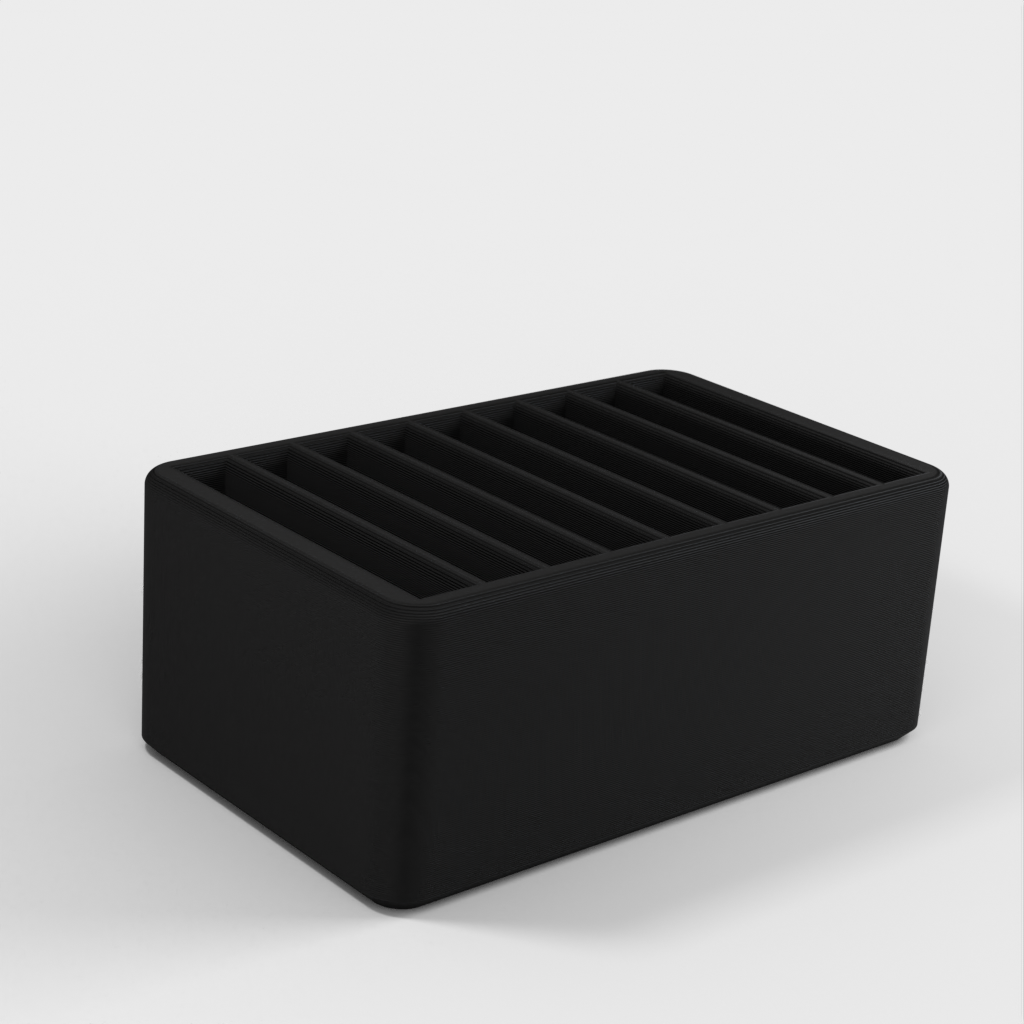Questo è un supporto per schede SD facile e veloce da stampare. Ha spazio per 9 schede e misura 48,5 mm (lunghezza), 30 mm (larghezza) e 20 mm (altezza). Perfetto per conservare in modo organizzato le schede SD.
