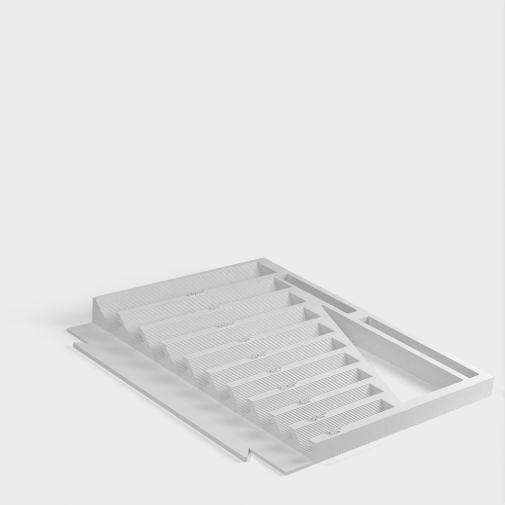 Supporto per set di chiavi a forchetta, in modo da poter organizzare facilmente i tuoi strumenti e mantenere l'ordine nella tua officina. Questo pratico supporto è progettato per adattarsi perfettamente a un cassetto, contribuendo a mantenere la tua officina ordinata e organizzata.