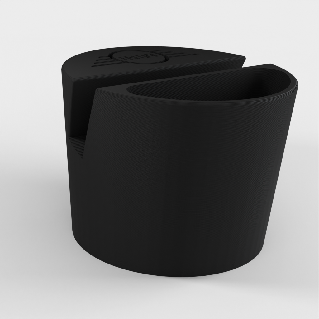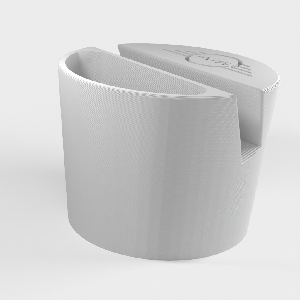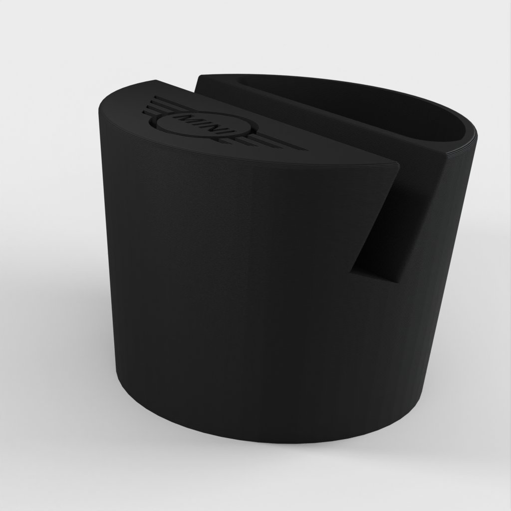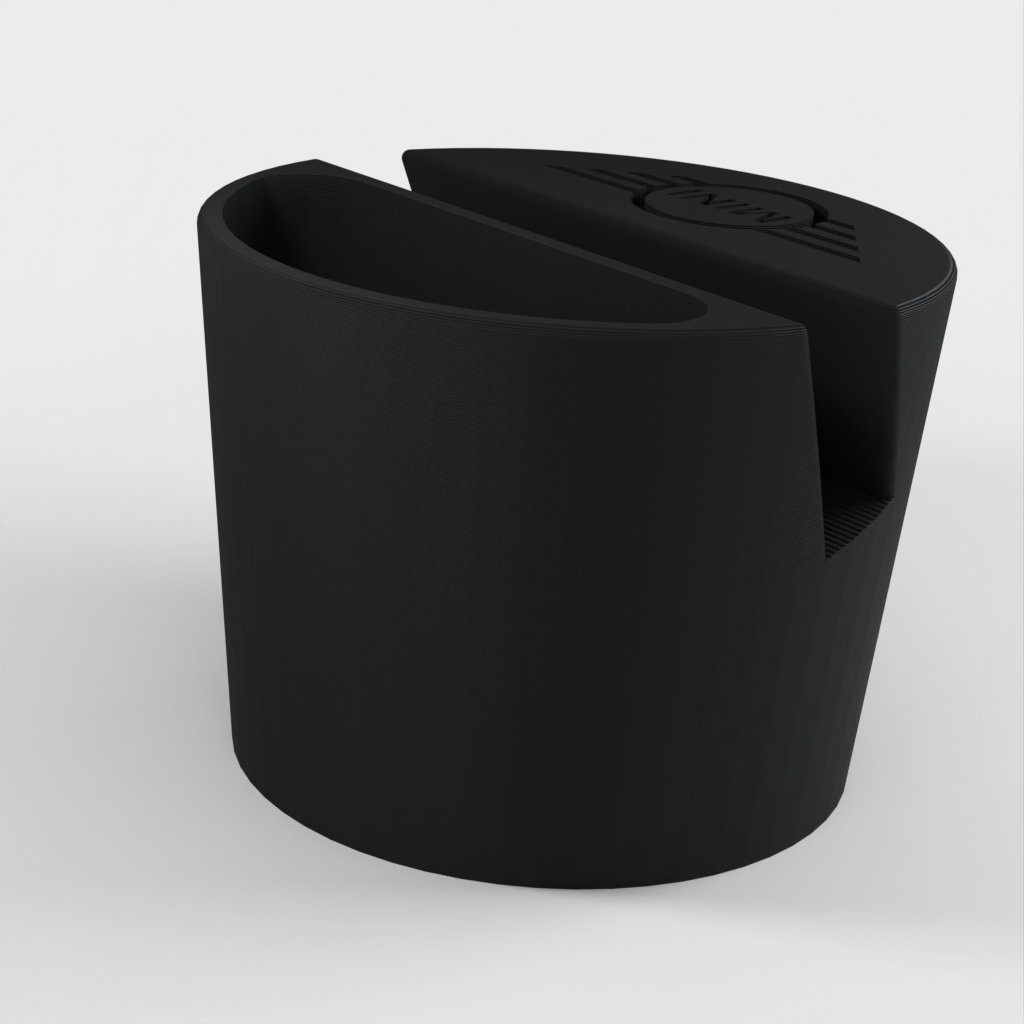 Supporto per telefono per un'auto Mini Cooper, progettato per adattarsi al portabicchieri. Il supporto per telefono può contenere telefoni fino a 11 mm di spessore e 75 mm di larghezza. Con logo Mini e un incavo per piccoli oggetti come i telecomandi. Aiuta a mantenere la tua auto organizzata e assicura che il tuo telefono sia sempre a portata di mano.