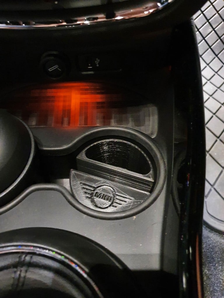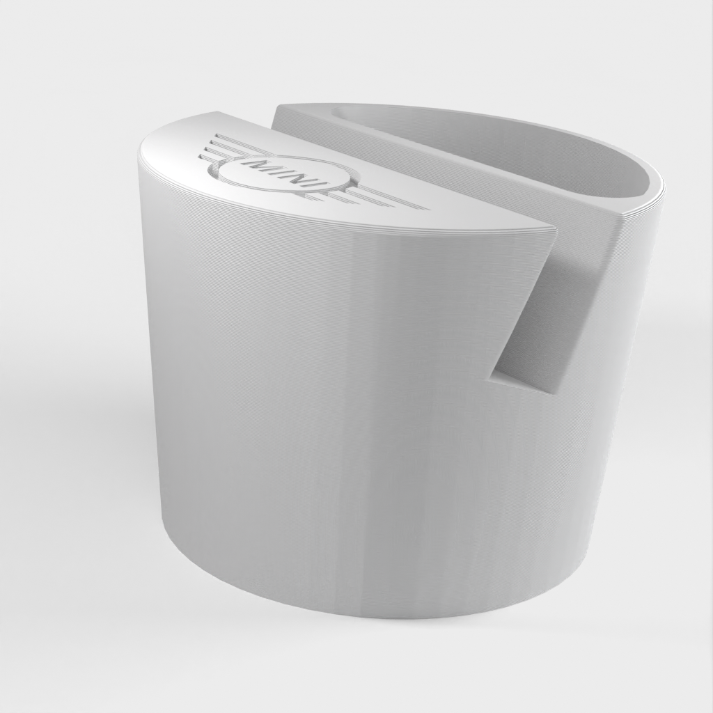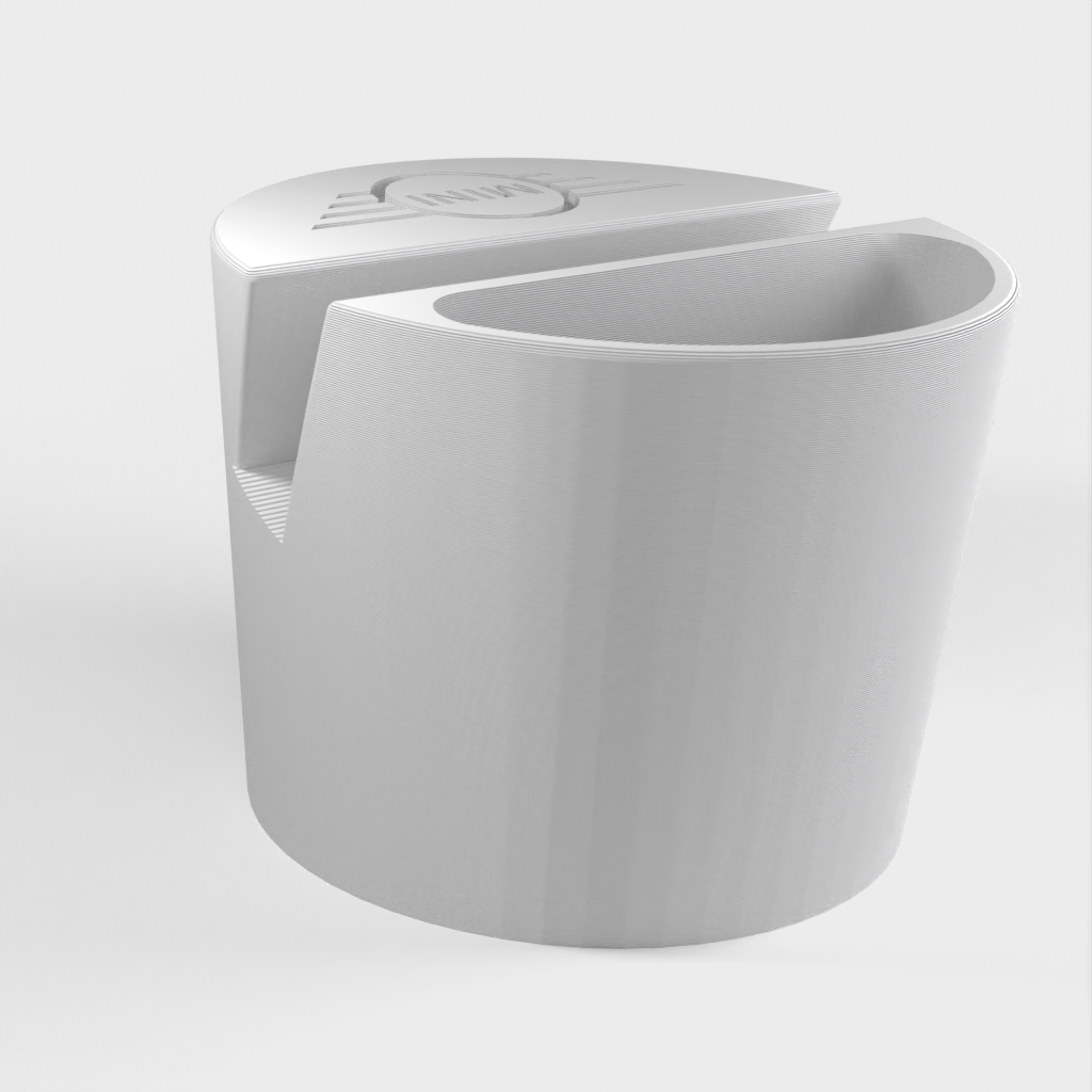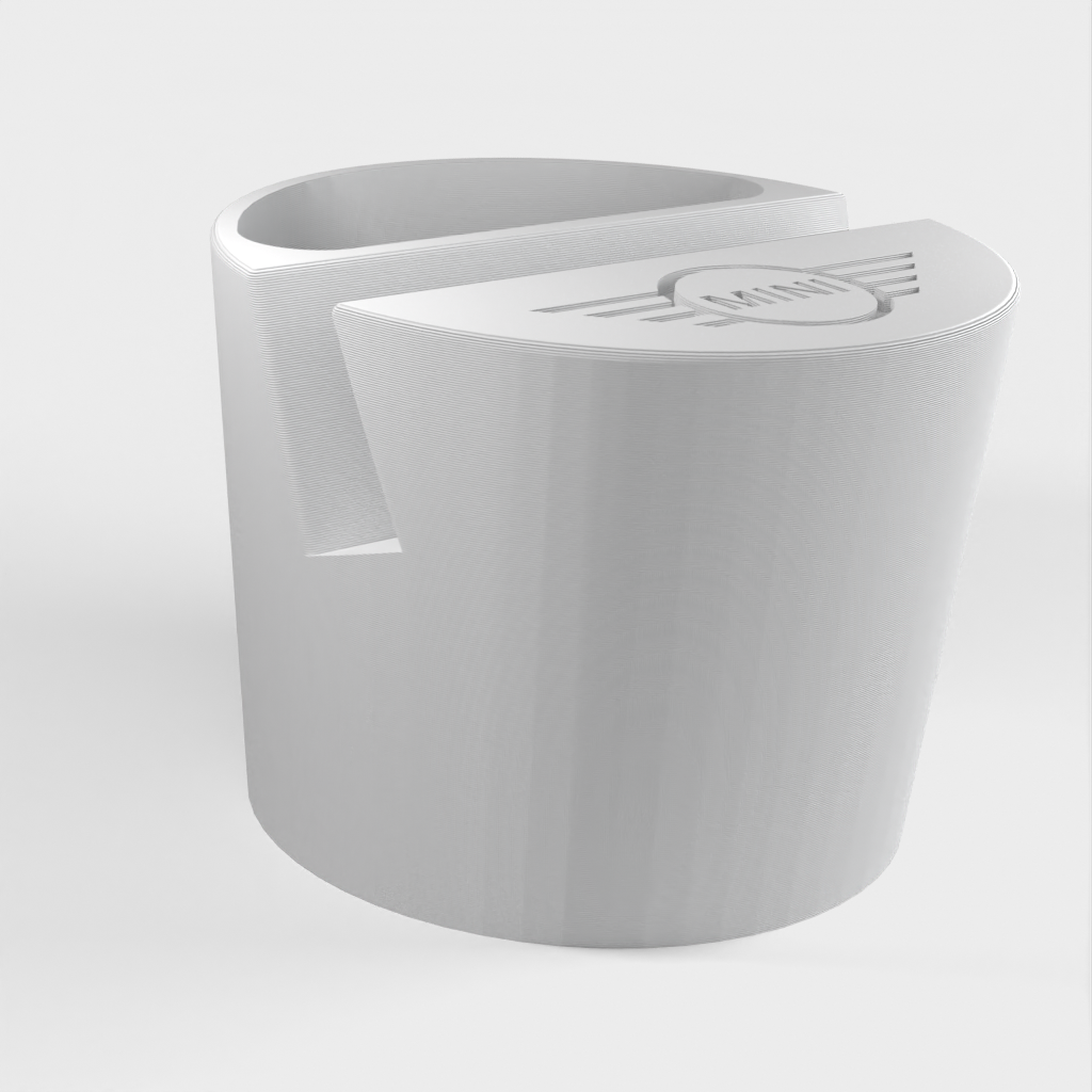 Supporto per telefono per un'auto Mini Cooper, progettato per adattarsi al portabicchieri. Il supporto per telefono può contenere telefoni fino a 11 mm di spessore e 75 mm di larghezza. Con logo Mini e un incavo per piccoli oggetti come i telecomandi. Aiuta a mantenere la tua auto organizzata e assicura che il tuo telefono sia sempre a portata di mano.