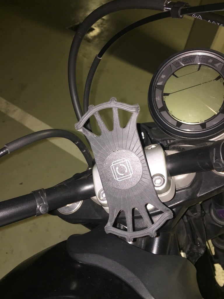 Il tuo smartphone è tenuto saldamente in posizione con quattro robuste fasce elastiche che afferrano saldamente ogni angolo del telefono. La piastra associata viene quindi montata su una robusta base, che si fissa discretamente al manubrio della moto. Una pratica funzione è che la piastra può essere facilmente rimossa e ruotata, offrendo una visualizzazione e una flessibilità ottimali durante la guida.