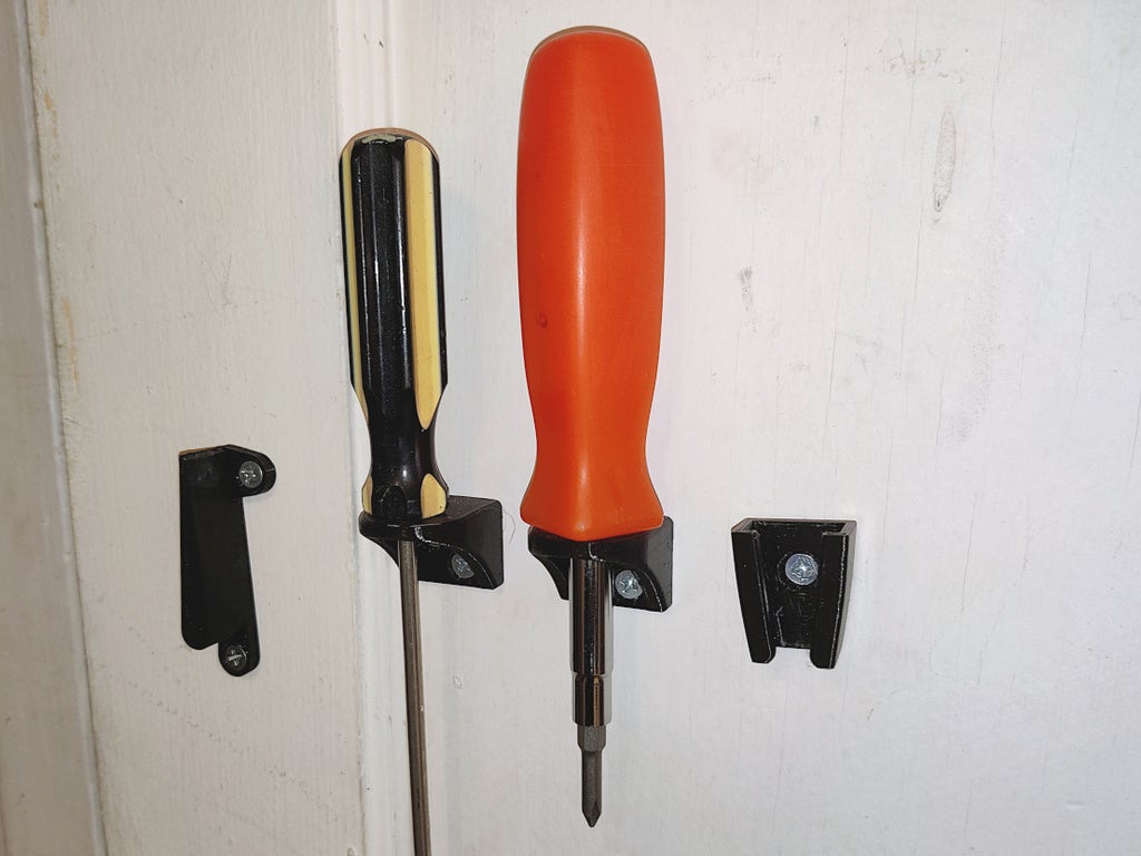 Si tratta di un semplice supporto a parete per cacciaviti. Può essere montato con due viti a testa svasata #8 o #6. Non sono necessari supporti. Non sono necessari supporti.