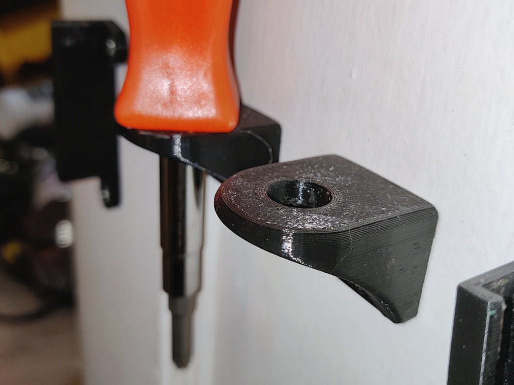 Il cacciavite può quindi essere facilmente posizionato nel supporto, rendendo più ordinata la vostra officina, capannone o veicolo da lavoro.