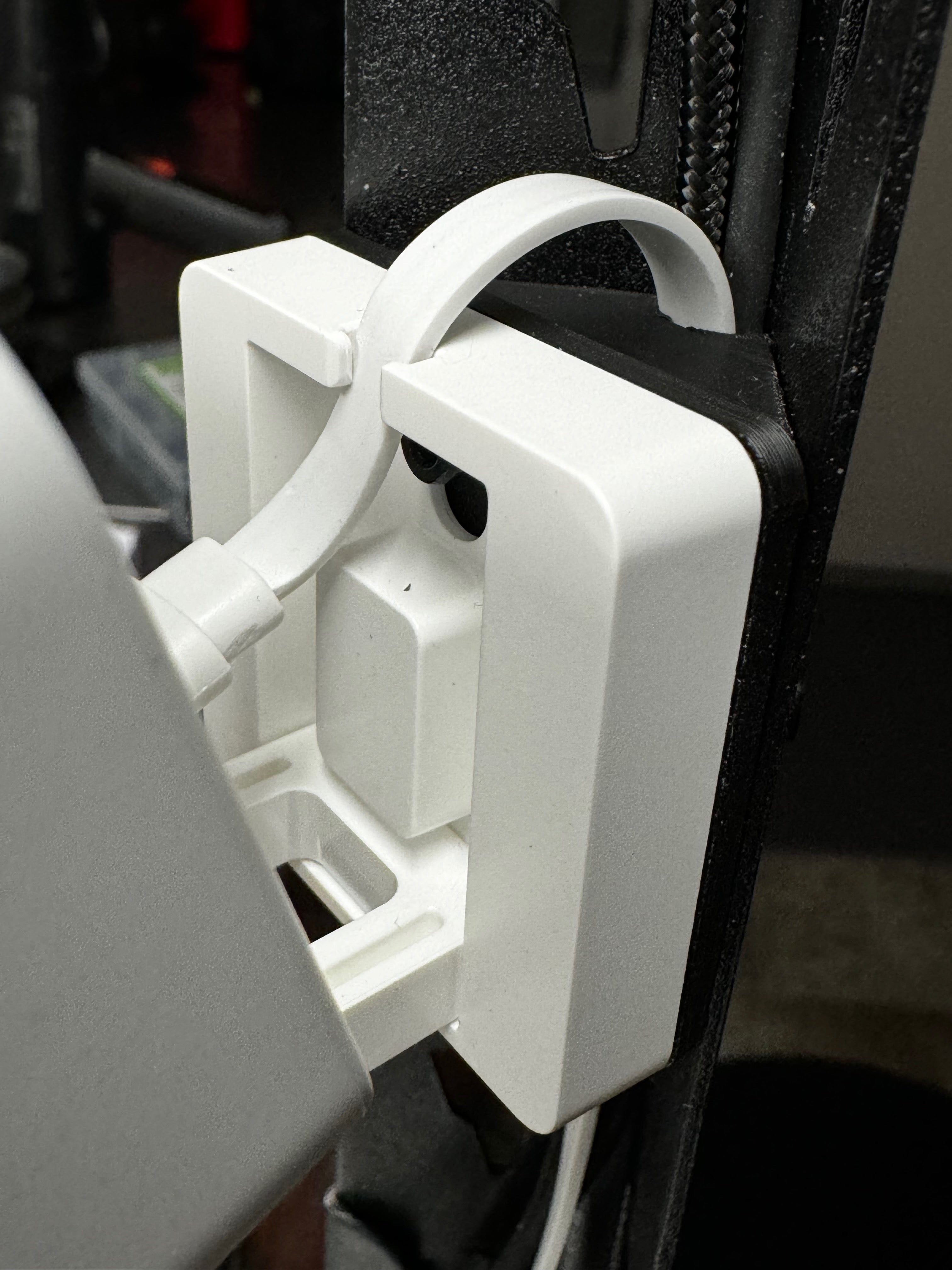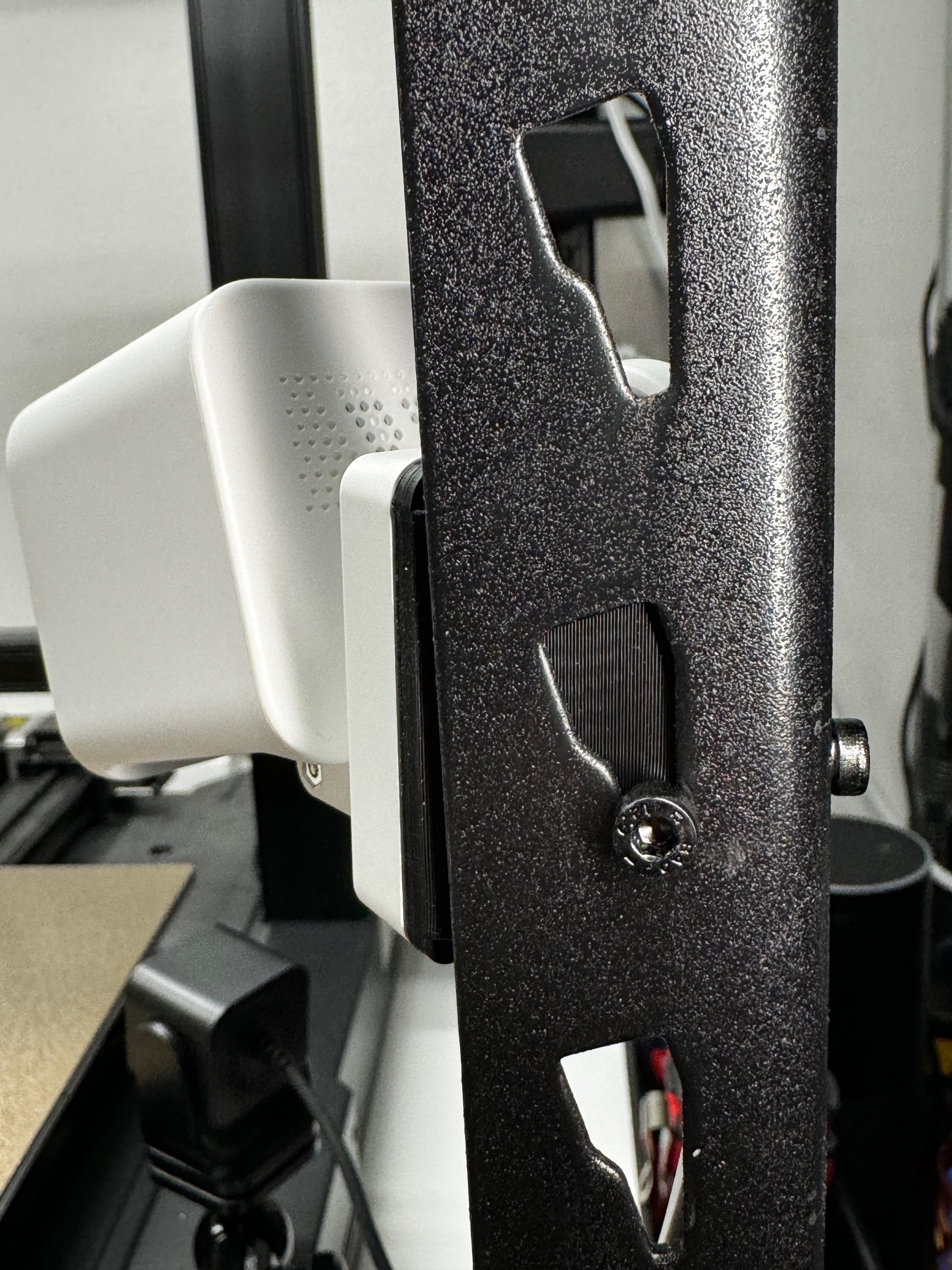 Questo ingegnoso supporto angolare è stato sviluppato per offrire alla tua Wyze Cam V3 Pro il posizionamento ottimale su uno scaffale in acciaio Husky. Sfruttando l'area dell'angolo, la fotocamera ottiene un campo visivo più ampio, essenziale per un monitoraggio efficace. La staffa è progettata per un montaggio della telecamera fisso e discreto, diverso dalle soluzioni più mobili come i tradizionali treppiedi per telecamera.
