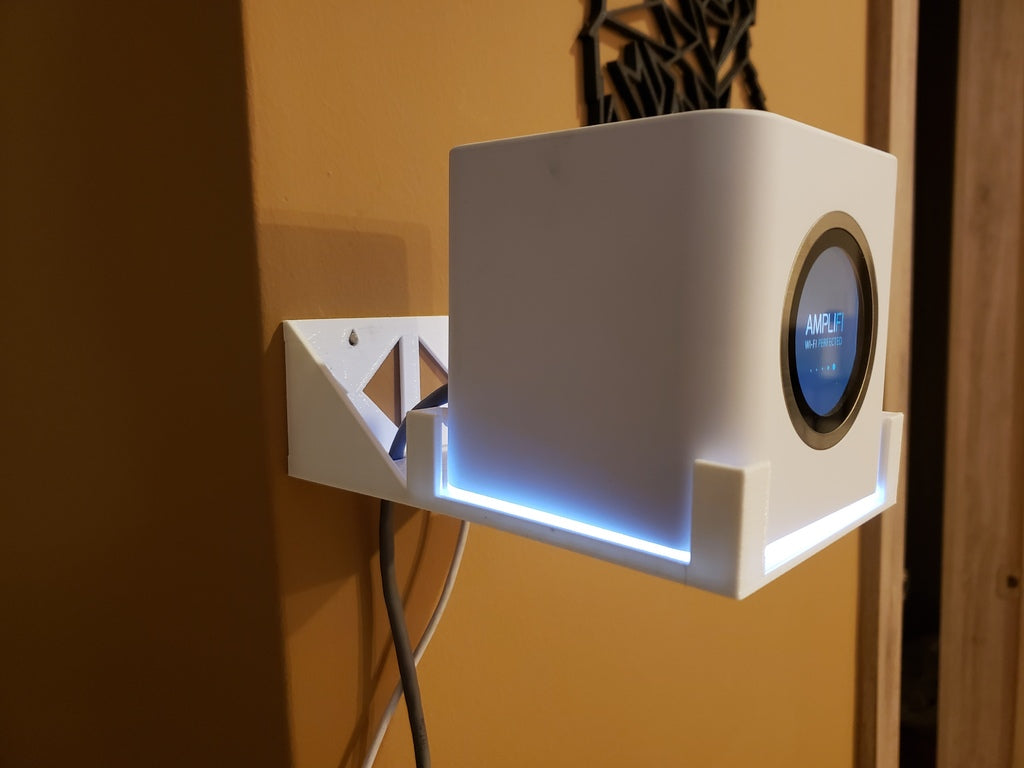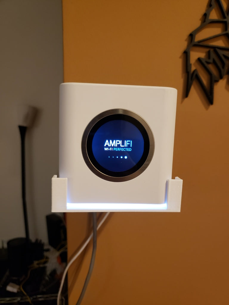 Questo è un supporto a parete destinato al router Ubiquiti AmpliFi HD. La staffa è facile da stampare e installare e dispone di funzionalità integrate per la gestione dei cavi. Il suo design è semplice ma efficace e funziona perfettamente per mantenere il router in posizione.
