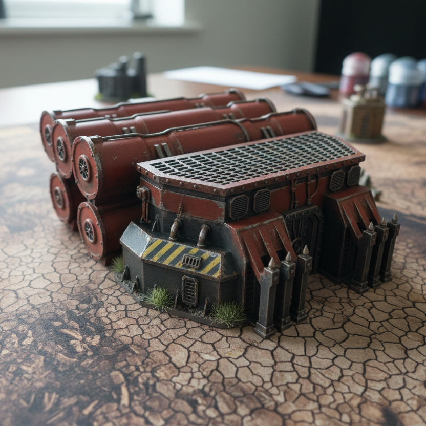 Questo terreno crea un'area logora e chimicamente influenzata, ideale come rovine o terreno sparso nei tuoi scenari di wargaming. Aggiunta perfetta per le battaglie di Warhammer 40k, dove può fungere da posizione strategica o edificio, arricchendo l'atmosfera del gioco.