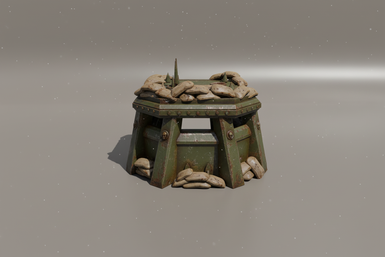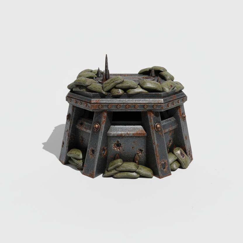 Questo Pillbox con Sacchi di Sabbia è progettato per wargames tabletop grimdark e offre copertura strategica e protezione per le tue unità. Aggiunge realismo e autenticità visiva ai tuoi scenari di battaglia, migliorando la profondità del tuo gameplay.