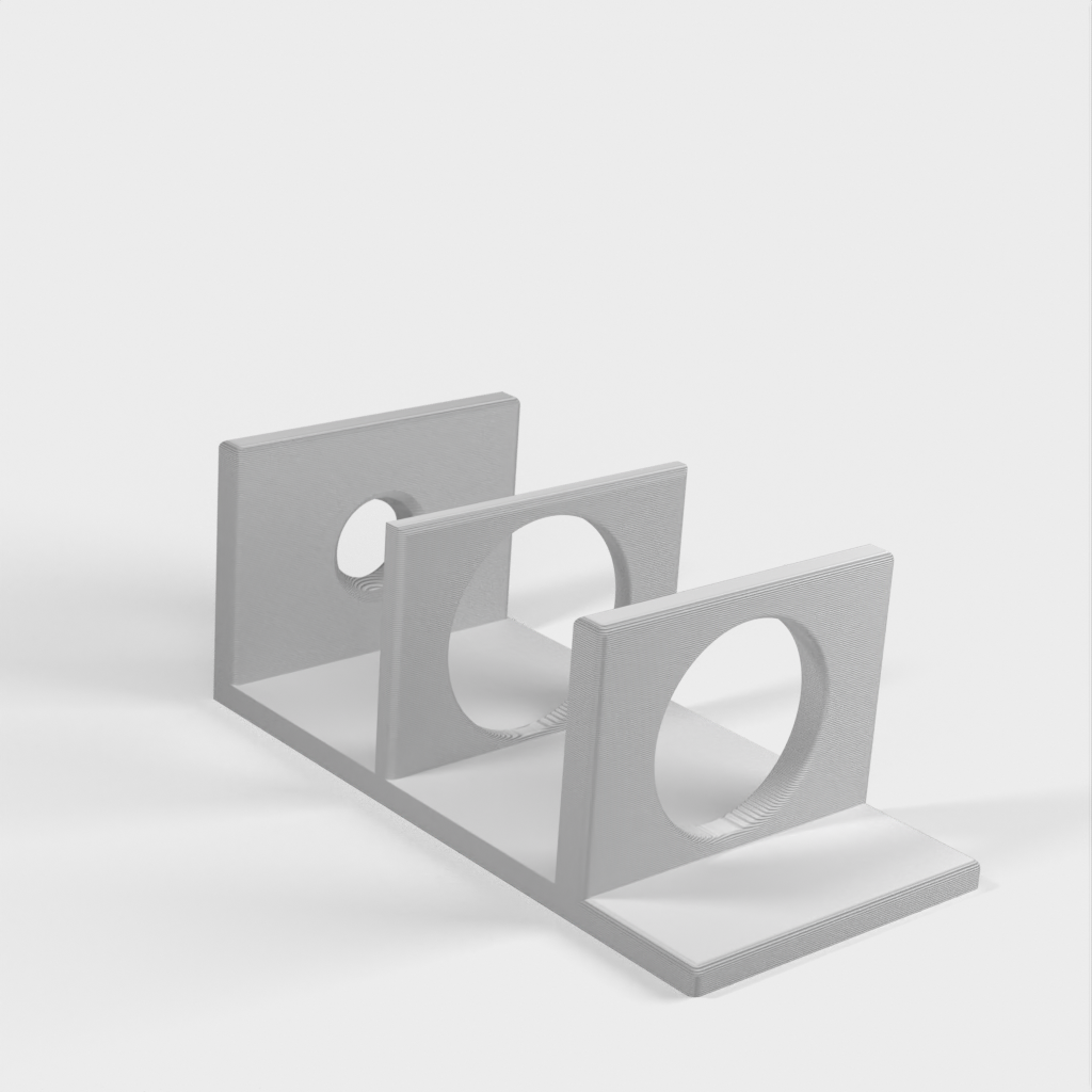 Questo è un portautensili per l'arrotondamento facile e veloce, progettato per un utilizzo minimo del filamento (16-20g in PLA). Il supporto è dotato di un piccolo foro a forma di coppa che consente all'utensile di stare dritto, sia che si preferisca inserirlo a testa in giù o a testa in giù, come mostrato nelle immagini.