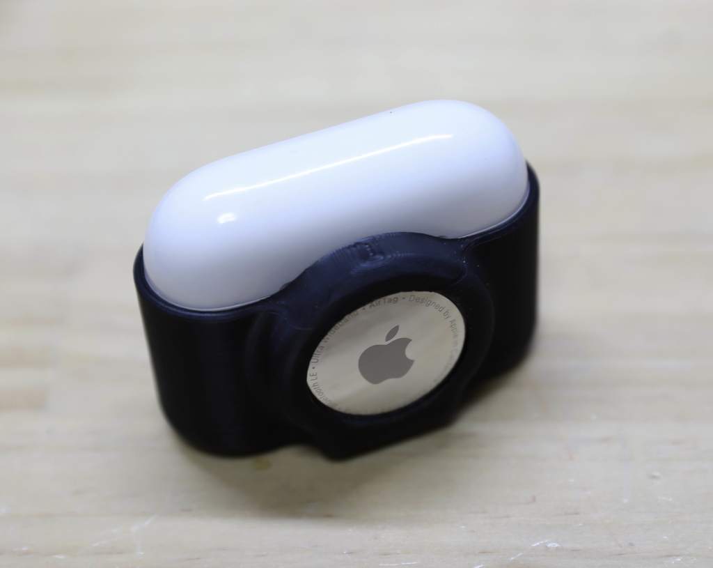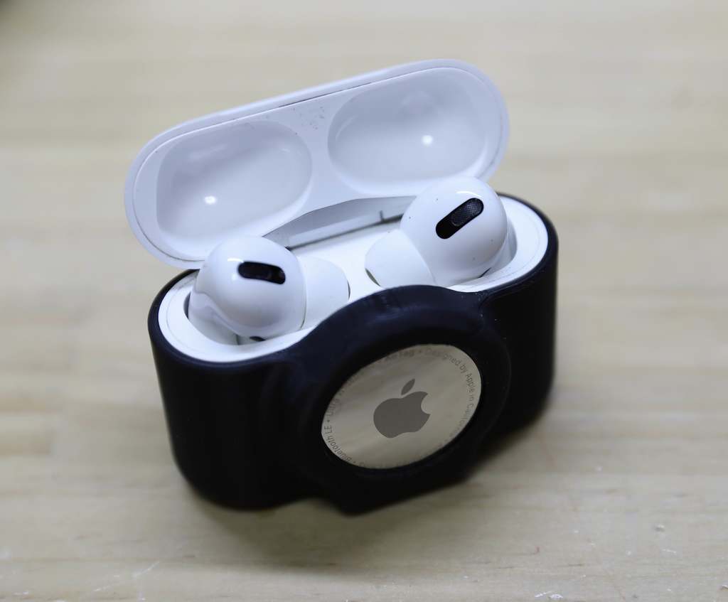 Custodia per collegare gli AirTag agli AirPods Pro. È possibile anche la ricarica wireless.