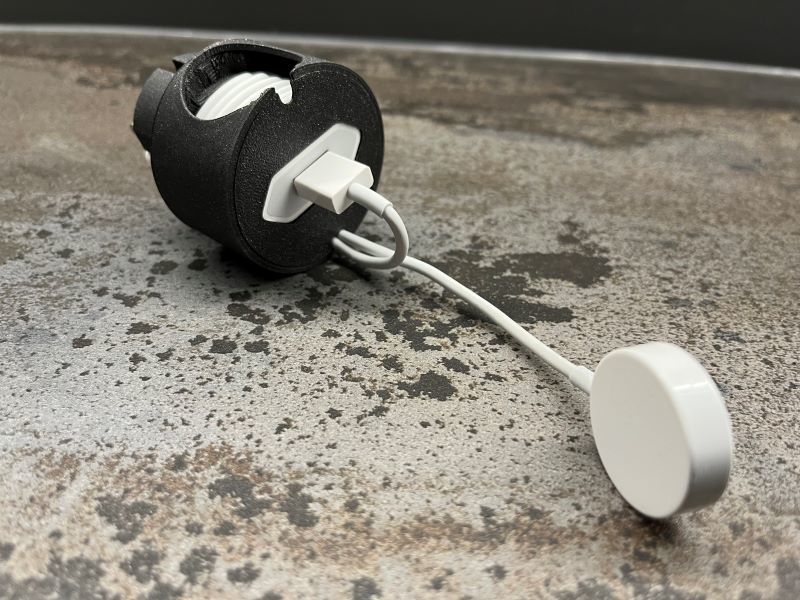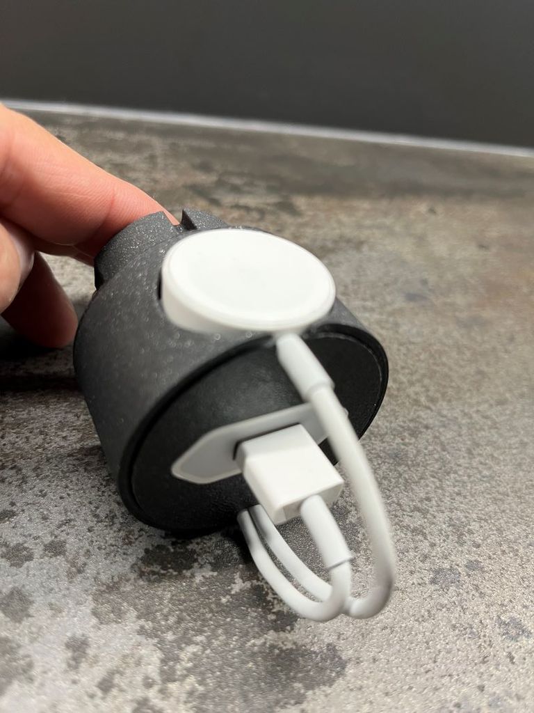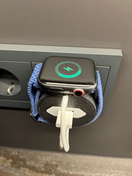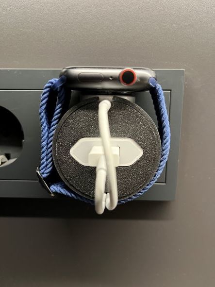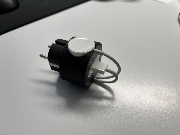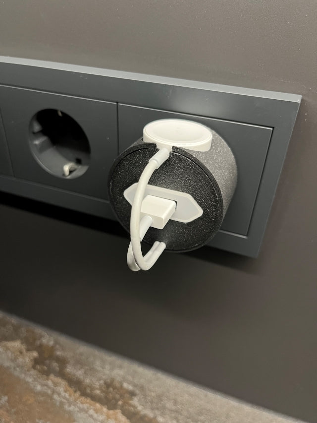 Questa è una stazione di ricarica progettata appositamente per il vostro Apple Watch. È perfetta per mantenere l'orologio organizzato e protetto durante la ricarica. È compatibile con le prese elettriche europee ed è facile da montare. La possibilità di coprire il cavo con il copricavo incluso garantisce una protezione e un'organizzazione ottimali. È sufficiente inserire la spina di alimentazione USB, arrotolare il cavo come mostrato nell'immagine, inserire il pad di ricarica e l'Apple Watch Dock V2 è pronto all'uso.