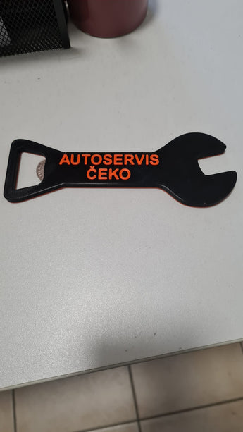 Apribottiglie a chiave con cacciavite. Un apribottiglie a chiave perfetto per i meccanici e per chi apprezza un apribottiglie robusto e pratico come gli attrezzi della propria cassetta degli attrezzi. Facile da usare: basta inserire una moneta, aprire la birra e godersela.