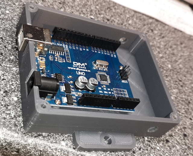 All'interno della custodia c'è molto spazio per i cavi e altri piccoli oggetti. Utilizzare piccole viti autofilettanti per l'arduino e il coperchio.