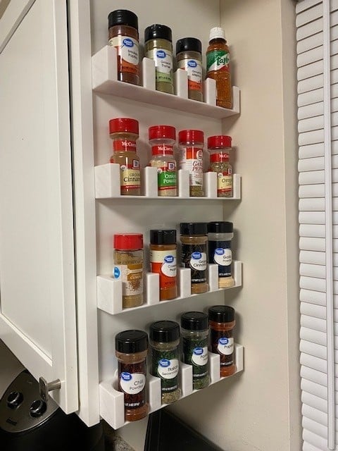 Organizza la tua cucina con questo pratico ripiano per spezie, che può essere facilmente montato sul lato della maggior parte dei mobili. È progettato per adattarsi a contenitori di spezie popolari come Great Value, Stonemill e McCormick, rendendolo una soluzione ideale per cucine piccole e grandi.