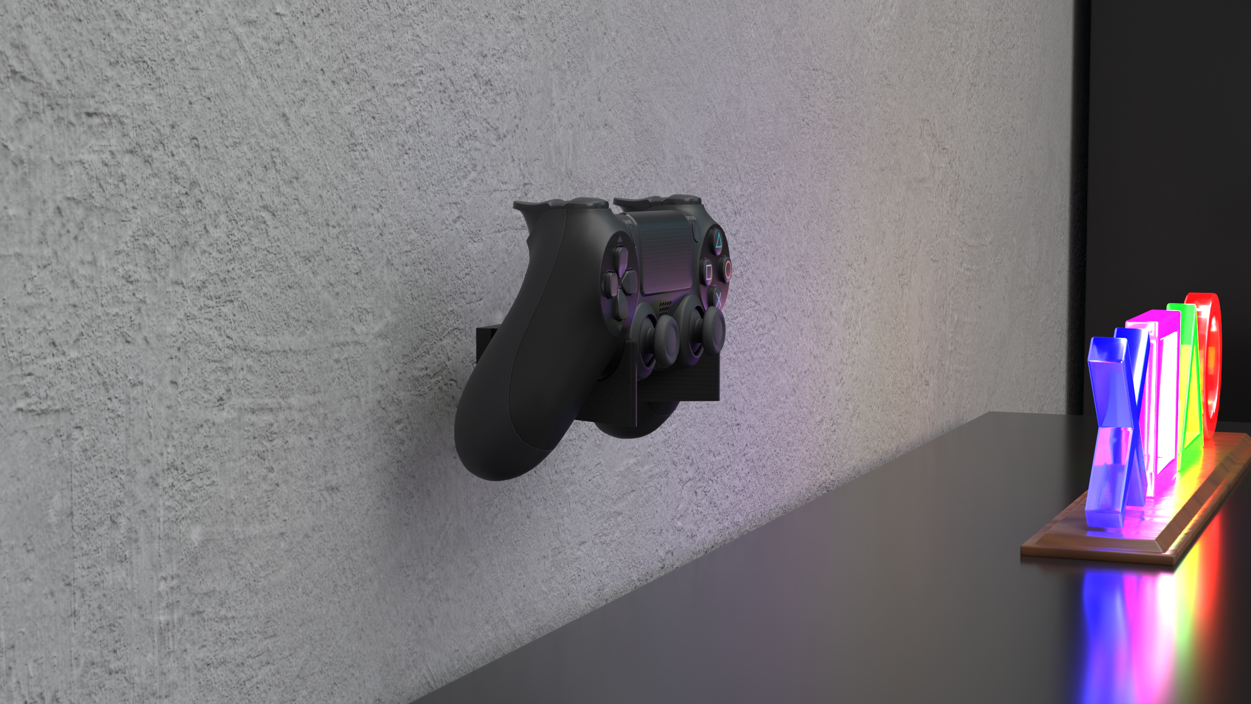 Supporto da parete sottile per un controller PS4, che allo stesso tempo ha spazio per il cavo di ricarica mentre il controller è nel supporto.