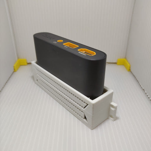 Semplice staffa a muro per una HTC VIVE Link Box. Il supporto offre libero accesso a tutti gli ingressi.