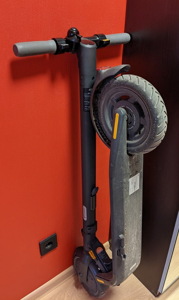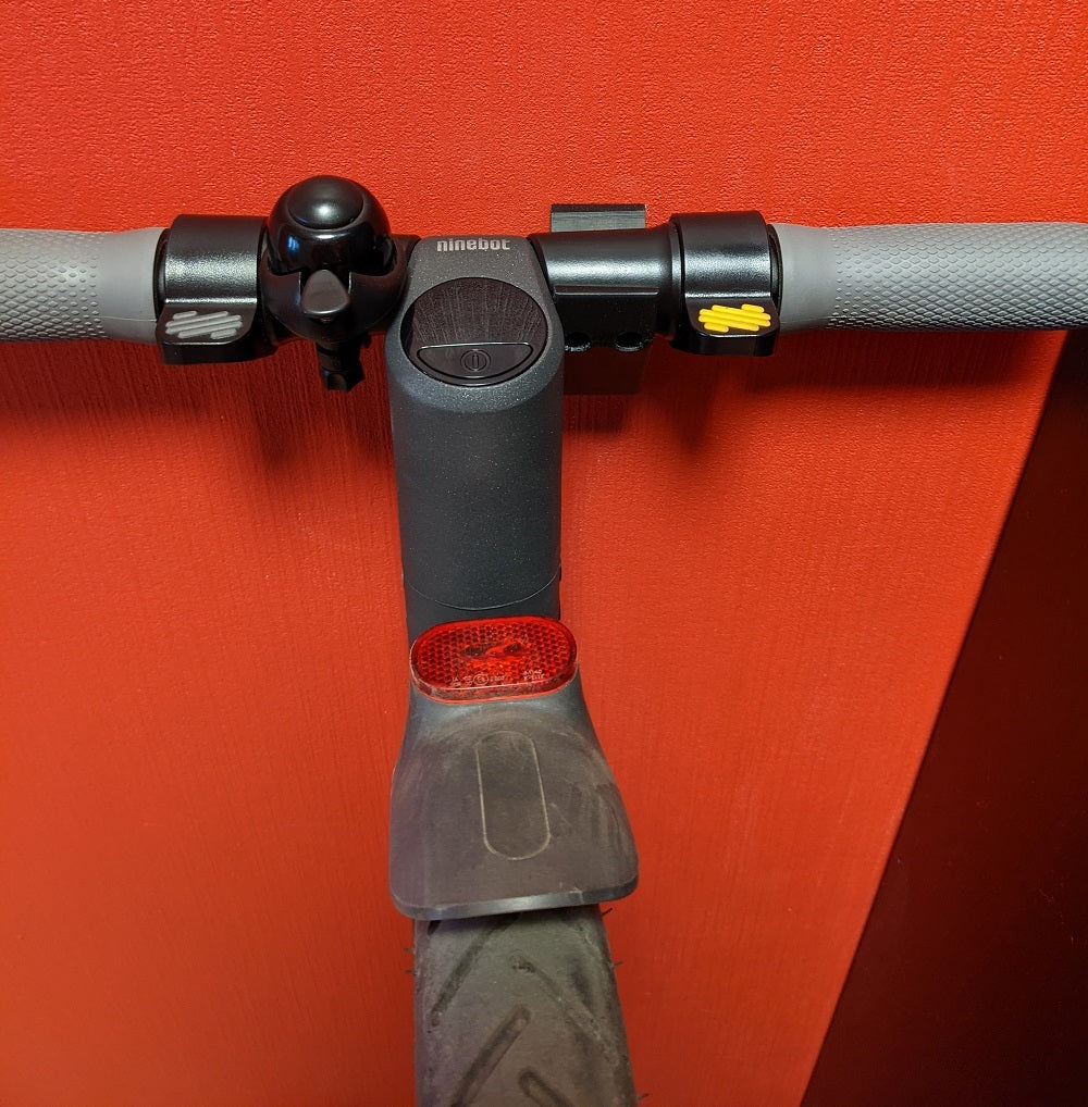 Semplice staffa a parete stampata in 3D per Ninebot e25 in modo che possa stare contro il muro e occupare il minor spazio possibile.