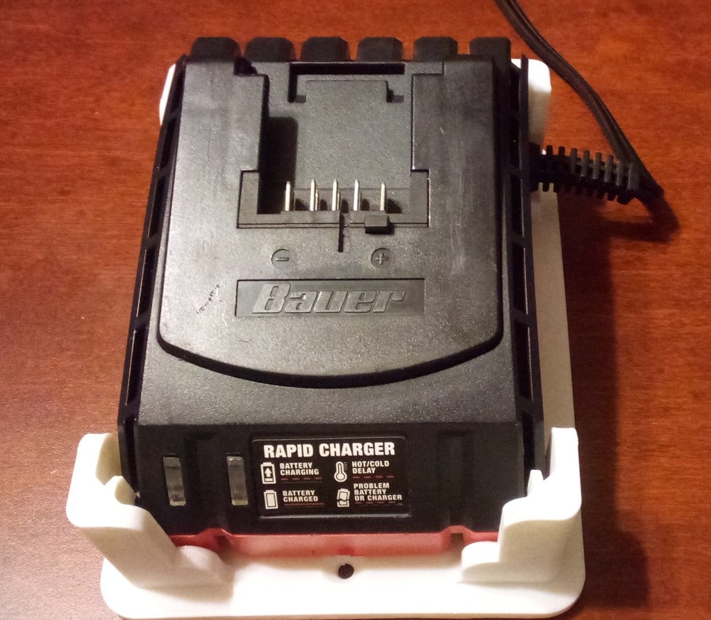 Si tratta di una staffa per il montaggio di un caricabatterie Bauer su una parete, un banco o uno scaffale. Il caricabatterie Bauer non ha un dispositivo di montaggio incorporato, quindi questo accessorio vi aiuterà a mantenere il vostro spazio di lavoro organizzato e ordinato.