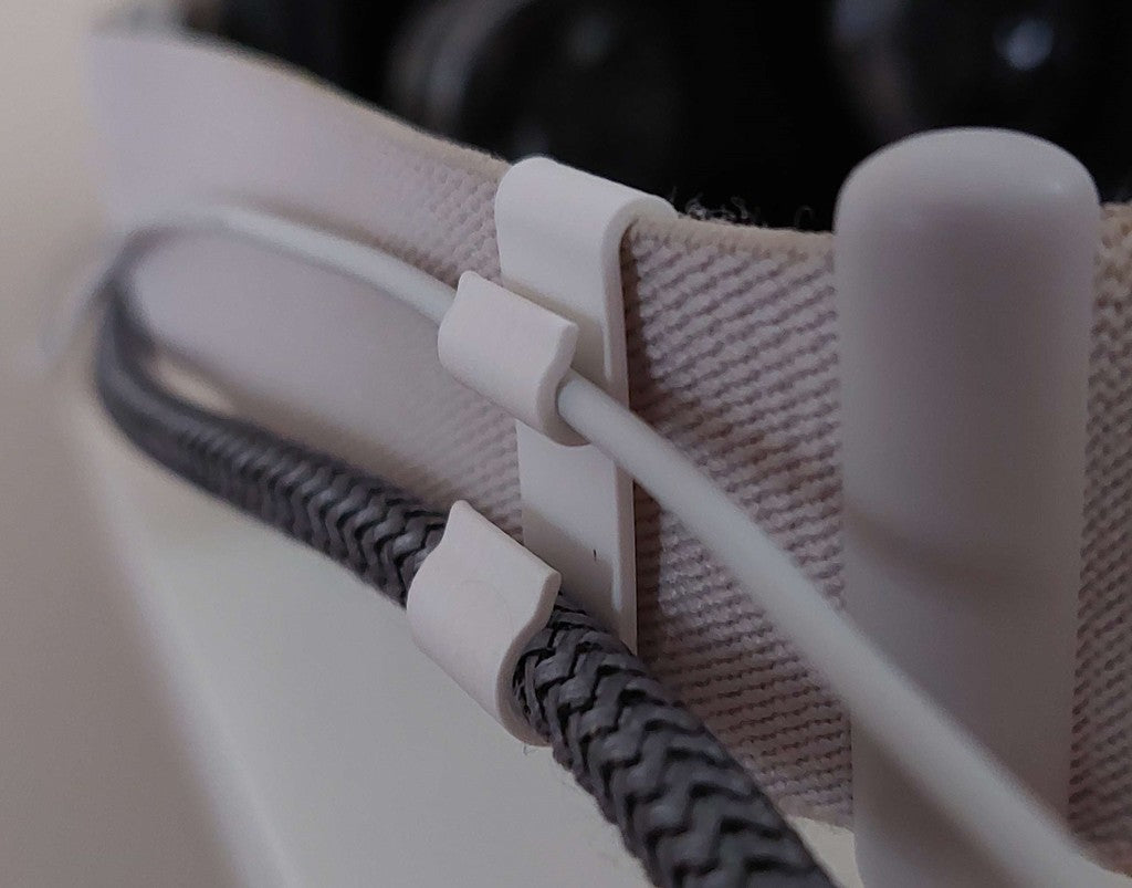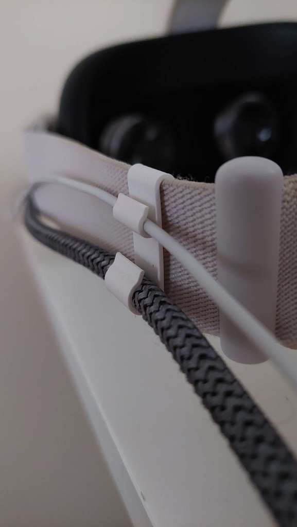 La clip è dotata di due supporti separati: uno con un diametro di 6,2 mm, ideale per il cavo Link, e un supporto più piccolo da 3 mm, perfetto per la maggior parte dei cavi delle cuffie. Si monta facilmente sul cinturino del visore e può rimanere lì in modo permanente. Il cavo può essere inserito e rimosso facilmente, anche indossando il visore VR, offrendoti un'esperienza di gioco semplice e organizzata.
