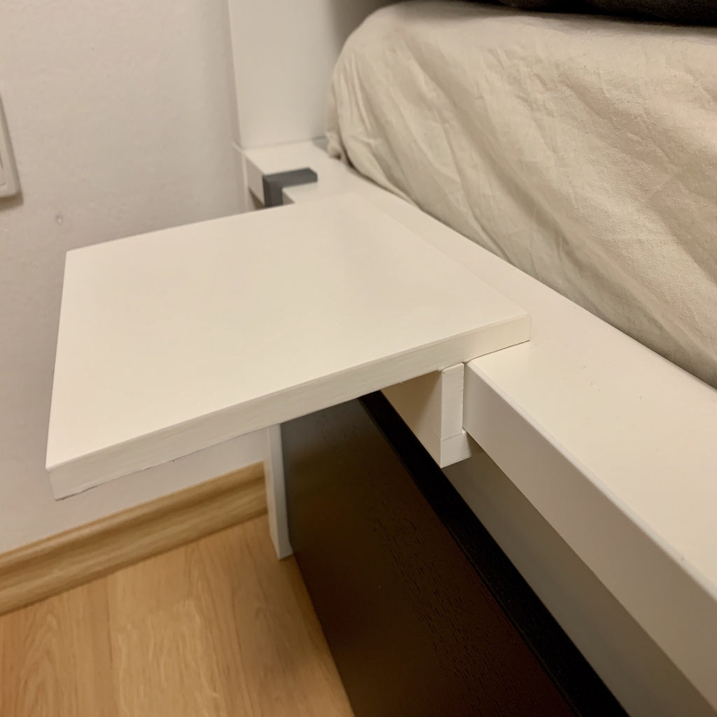Questo è un tavolino per il tuo telefono o qualunque cosa tu voglia raggiungere dal letto. Si adatta al letto IKEA MALM e non sono necessarie viti o colla per i mobili, dovrebbe adattarsi perfettamente (ma ci sono alcuni fori predisposti per le viti, se lo desideri).