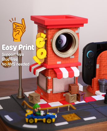 Questa Torre per Fotocamera, parte della collezione Turbo District, mette in sicurezza la tua fotocamera per Nintendo Switch 2. Puoi facilmente attivare la funzione privacy ruotando il secondo piano della torre e nascondendo la fotocamera. Dispone di una discreta gestione dei cavi e di una piattaforma superiore ideale per esporre una statuetta amiibo nel tuo setup di gioco.