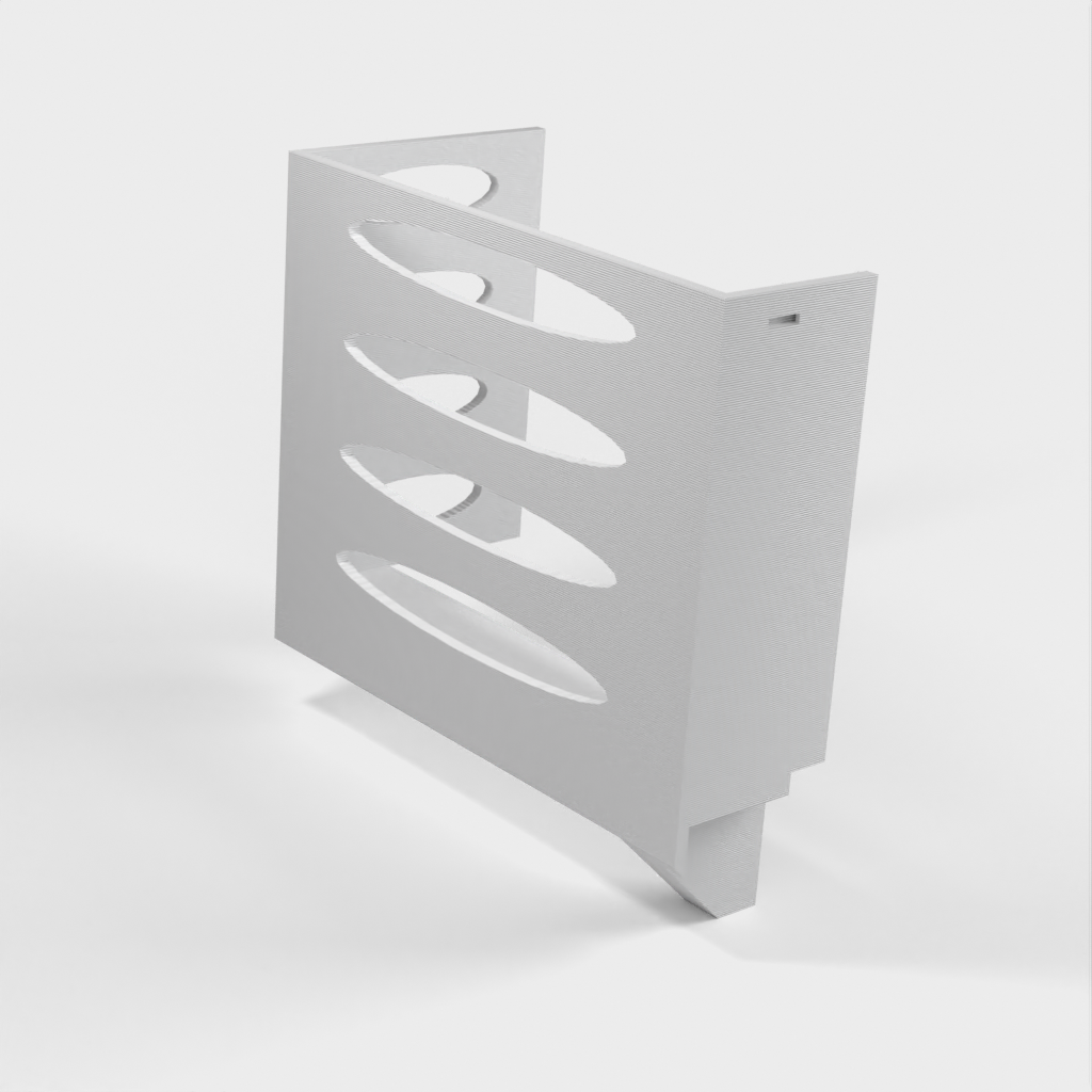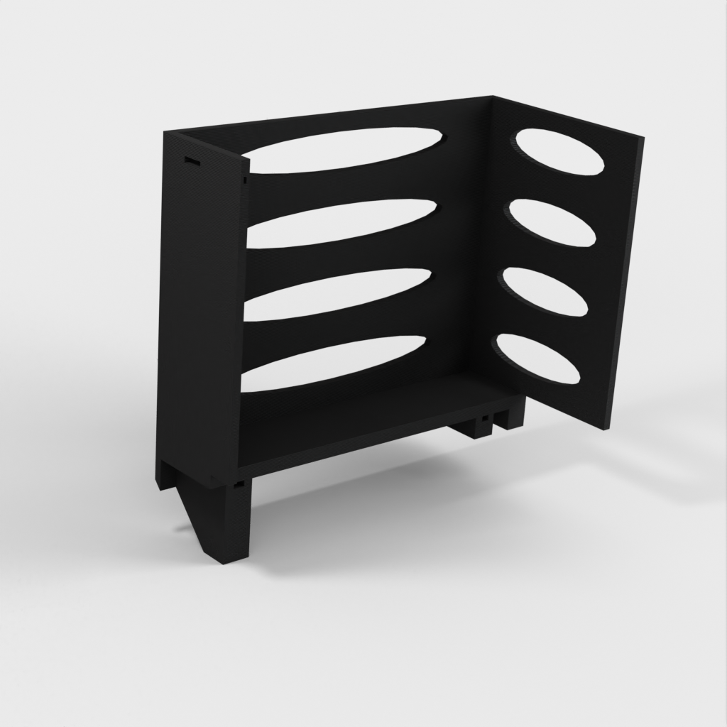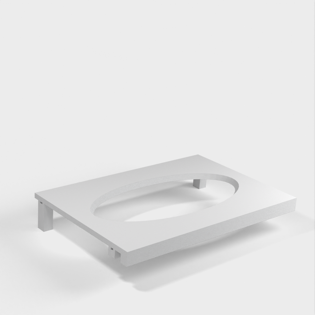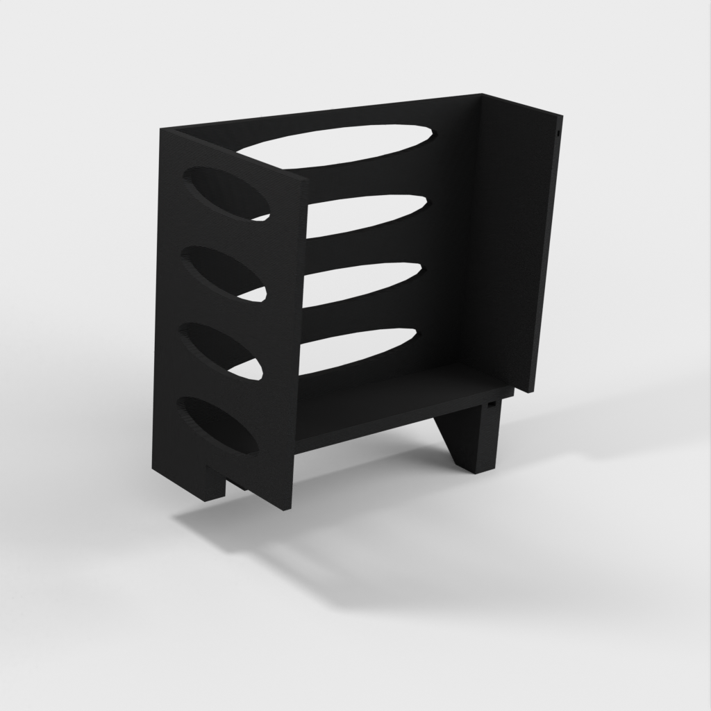 Questo distributore di asciugamani di carta può essere montato su una mensola Ikea Grundtal. Basta rimuovere il vassoio e posizionare gli elementi stampati sulle console. Il prodotto è dotato di aperture più piccole nella parte inferiore che possono essere utilizzate per fissare insieme gli elementi con un filo sottile. Ci sono anche aperture sul retro per il montaggio. Le dimensioni interne sono 130x 254 mm.