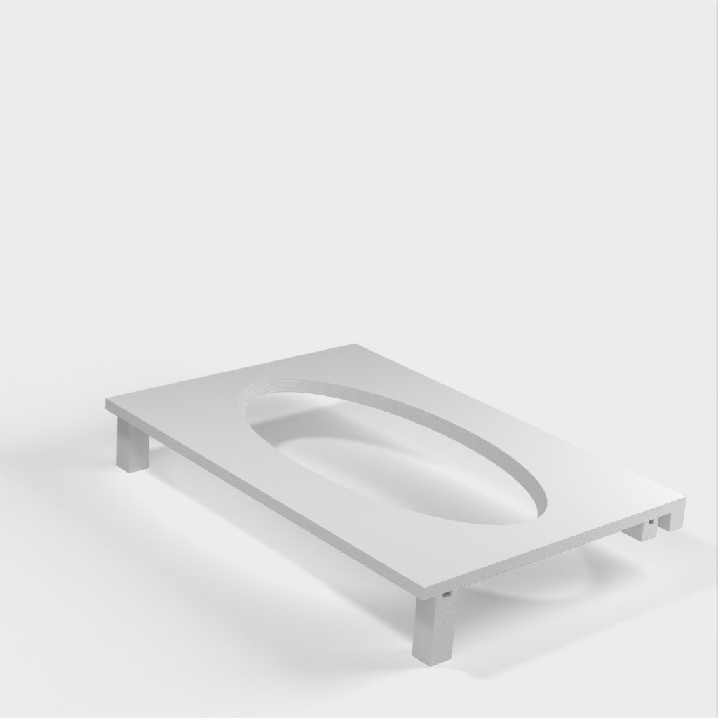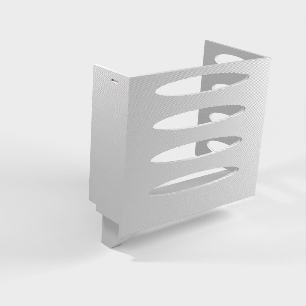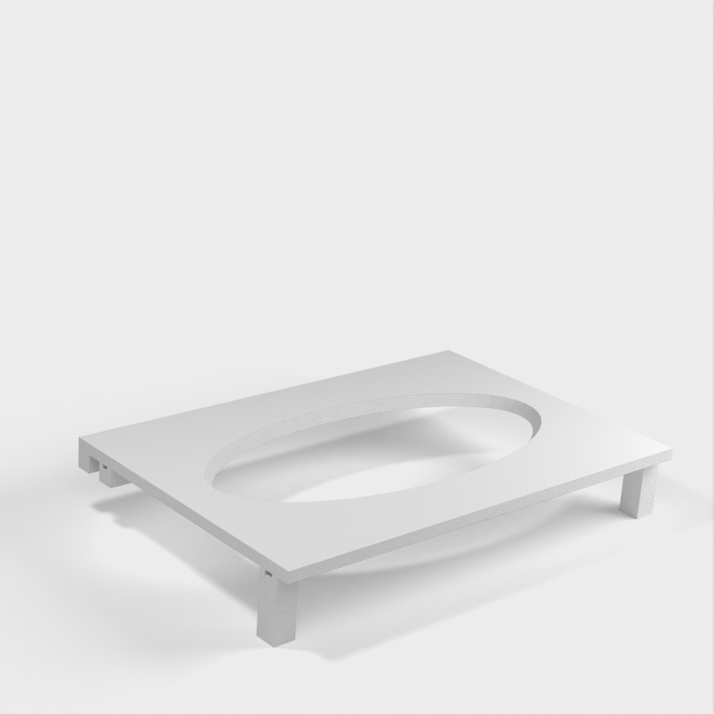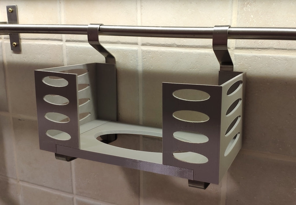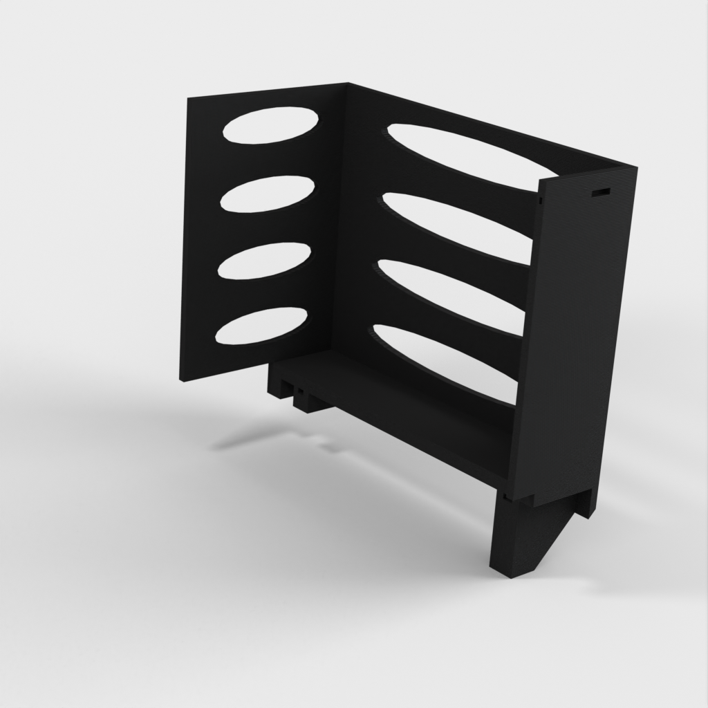Questo distributore di asciugamani di carta può essere montato su una mensola Ikea Grundtal. Basta rimuovere il vassoio e posizionare gli elementi stampati sulle console. Il prodotto è dotato di aperture più piccole nella parte inferiore che possono essere utilizzate per fissare insieme gli elementi con un filo sottile. Ci sono anche aperture sul retro per il montaggio. Le dimensioni interne sono 130x 254 mm.